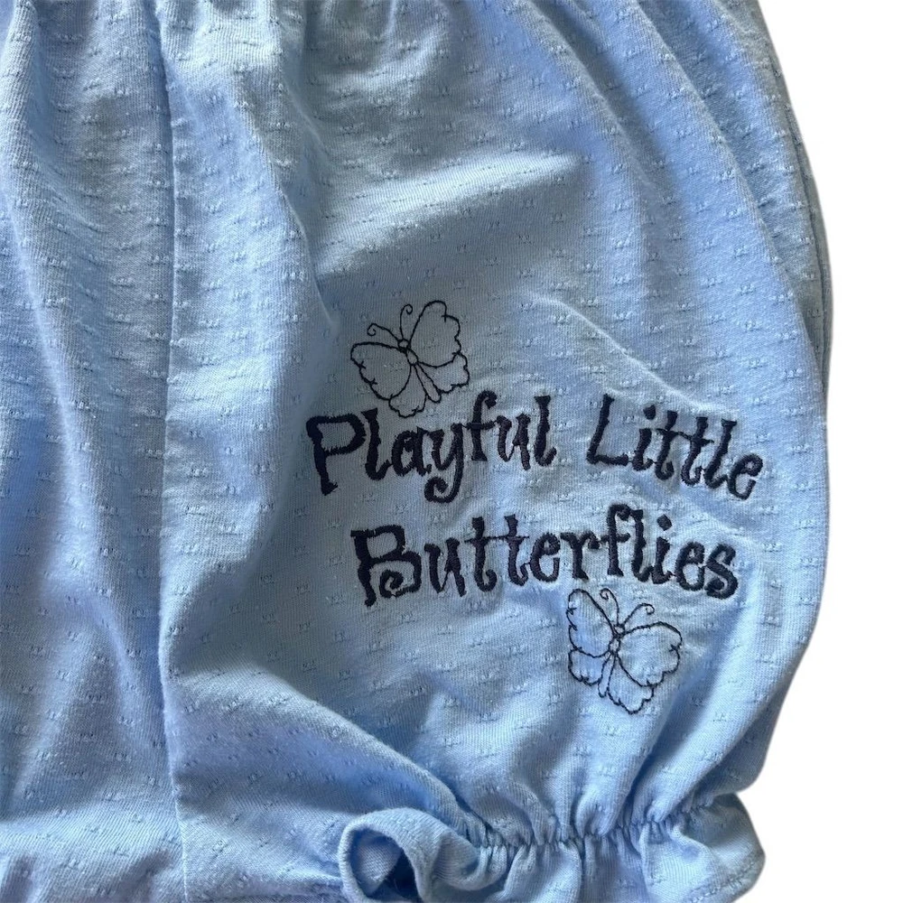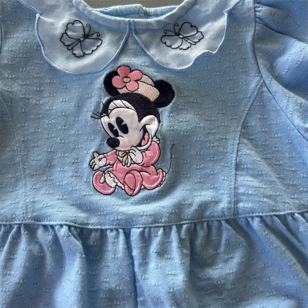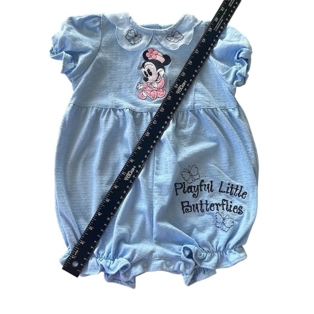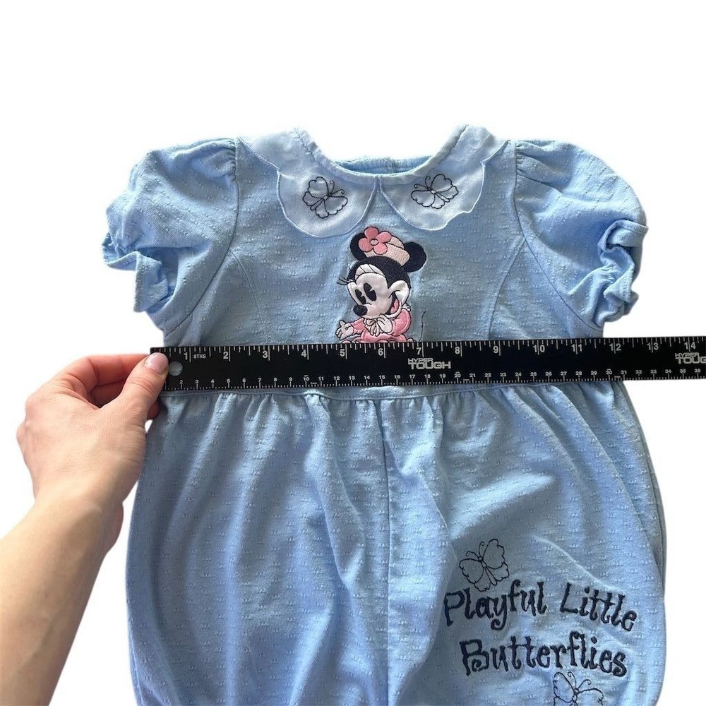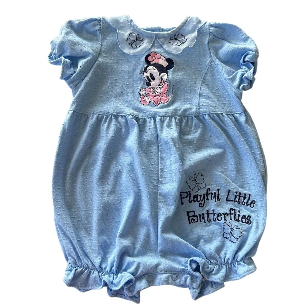 VTG Y2K Disney Minnie Mouse Baby Shortalls Romper Girls Blue Playful Butterflies