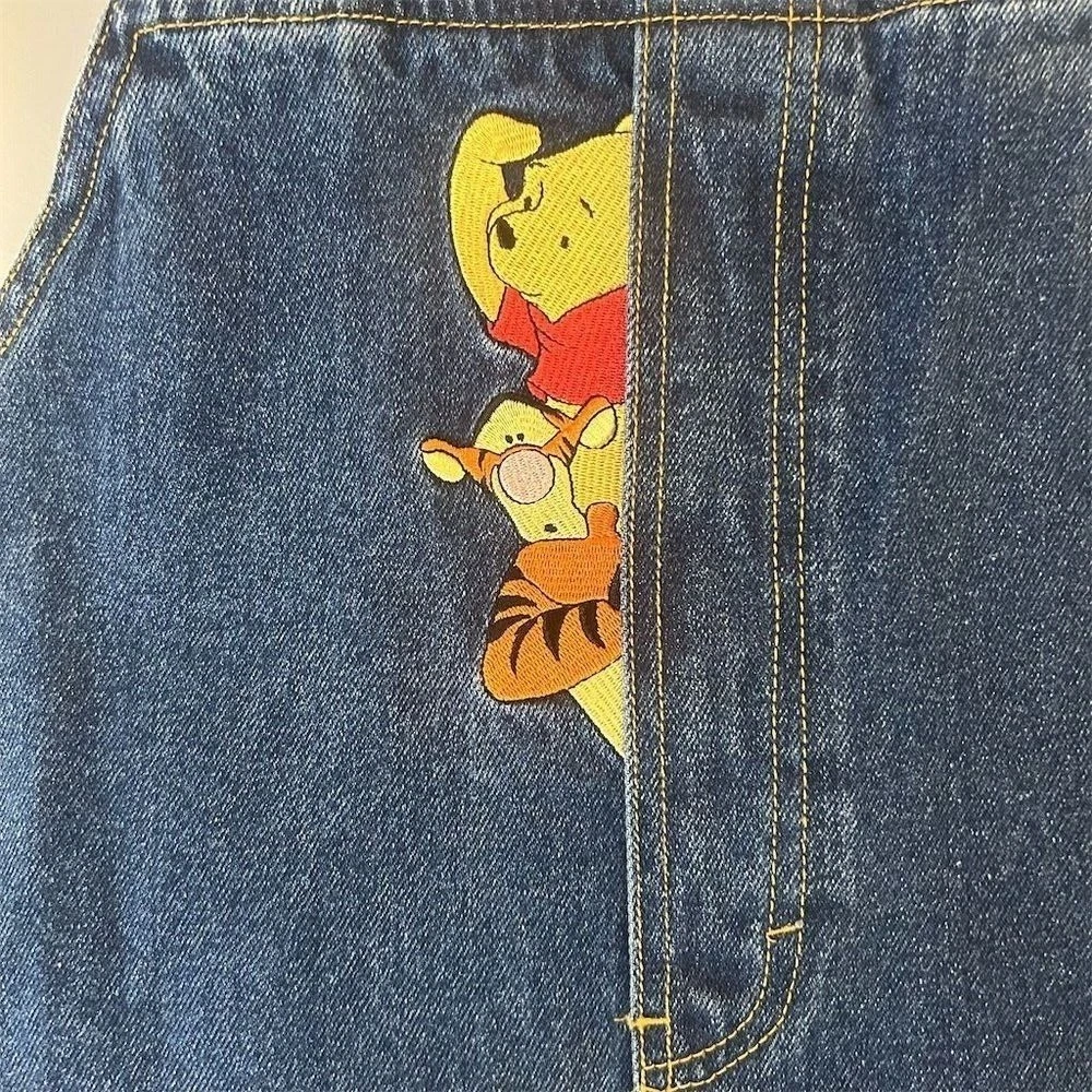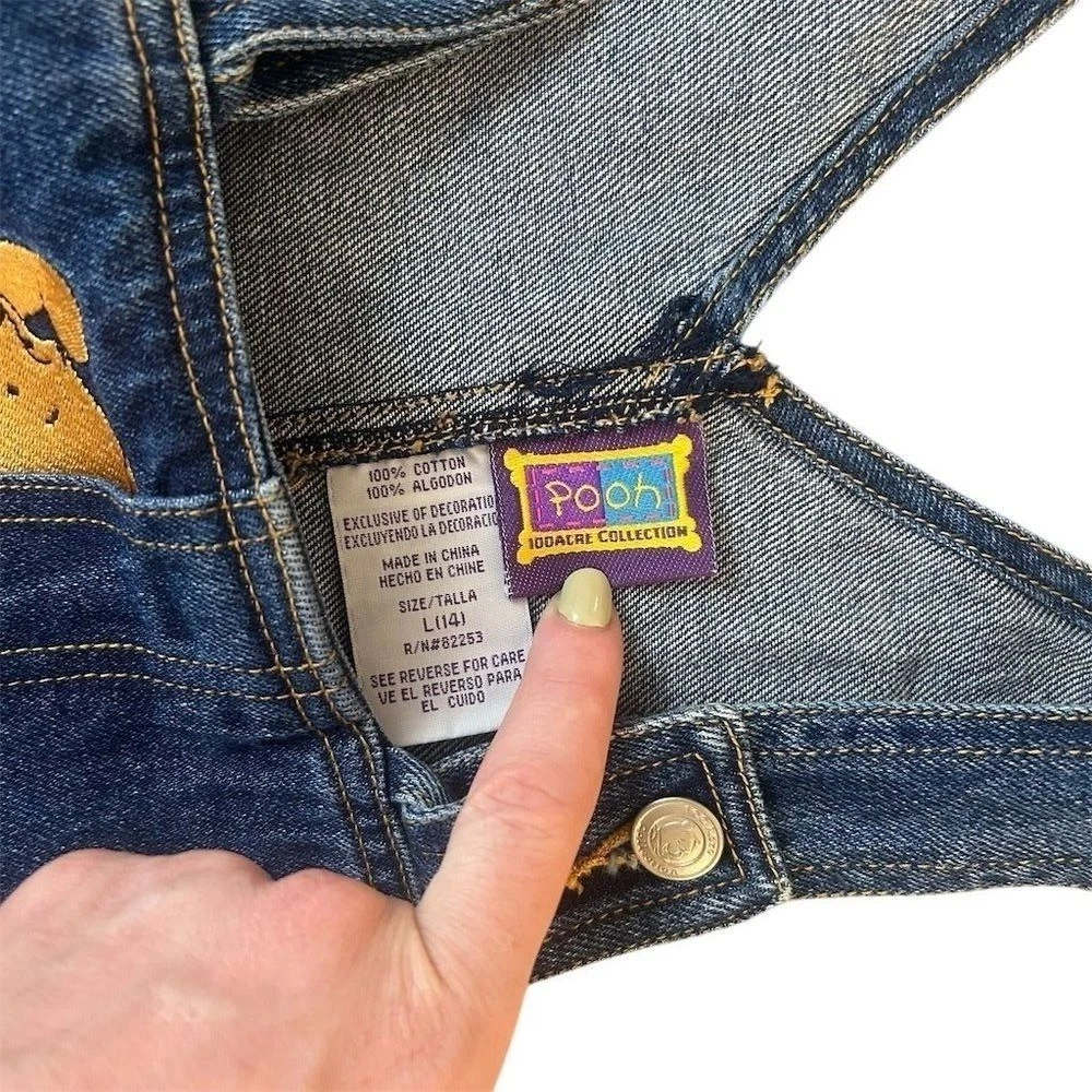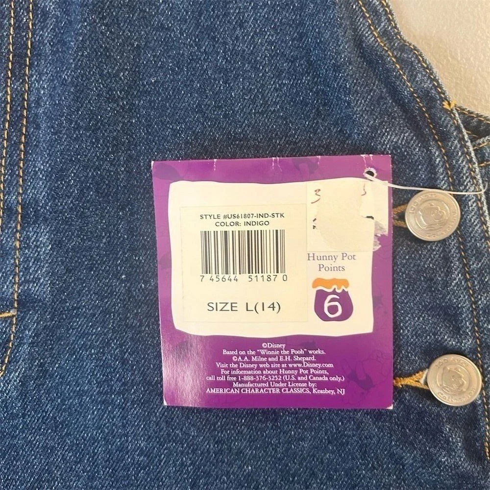 VTG Y2K Disney Winnie the Pooh Denim Overall Dress 100 Acre Collection Sz L 14