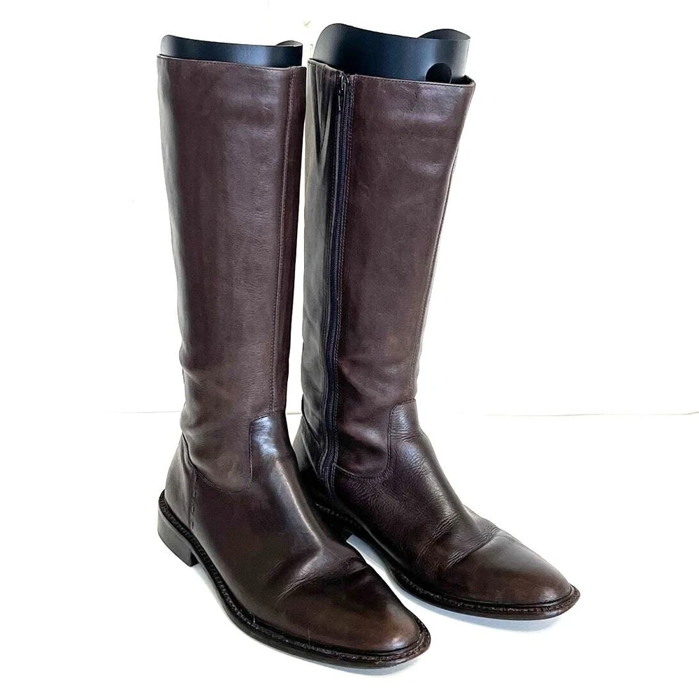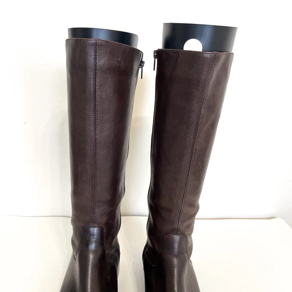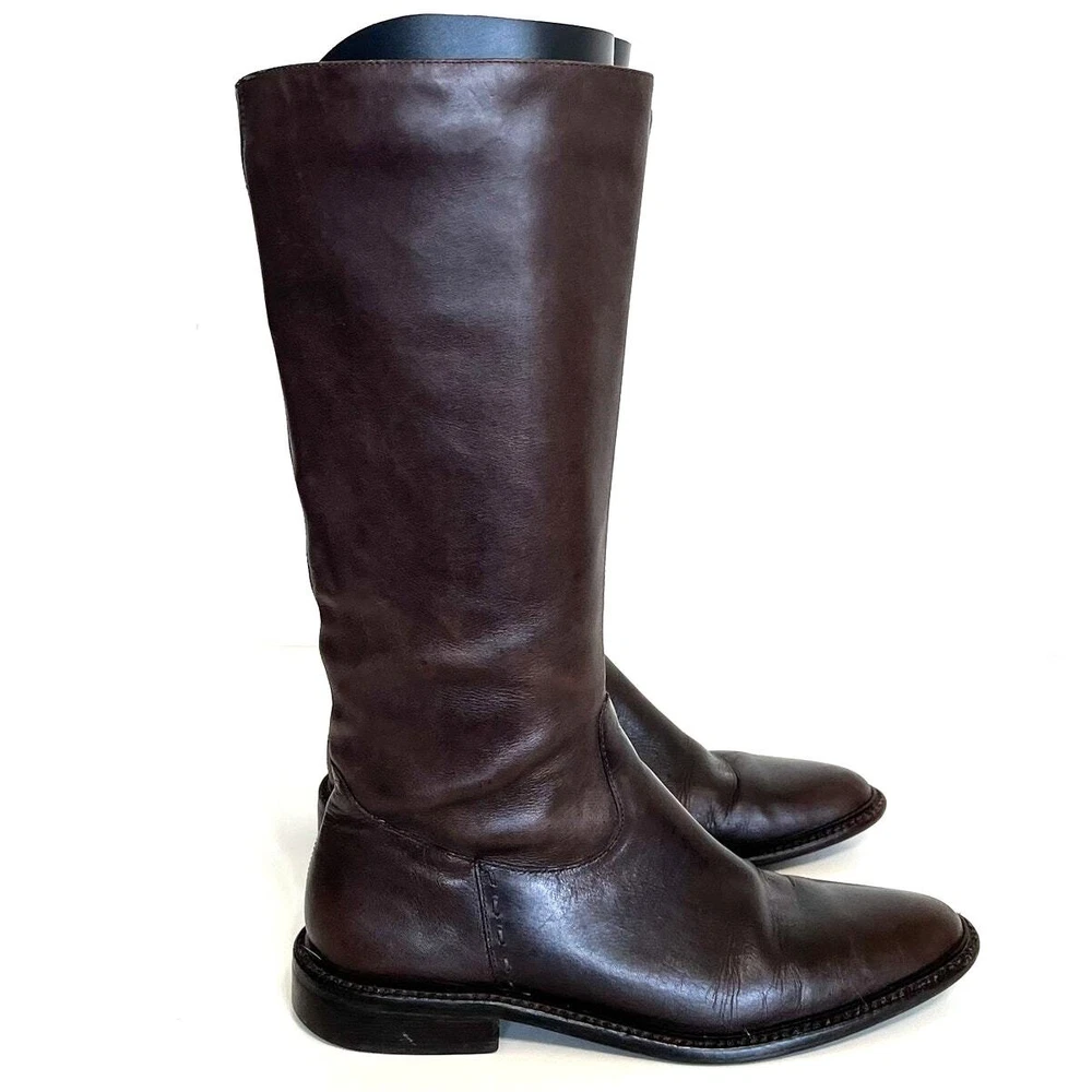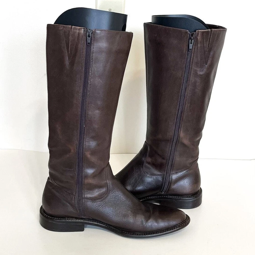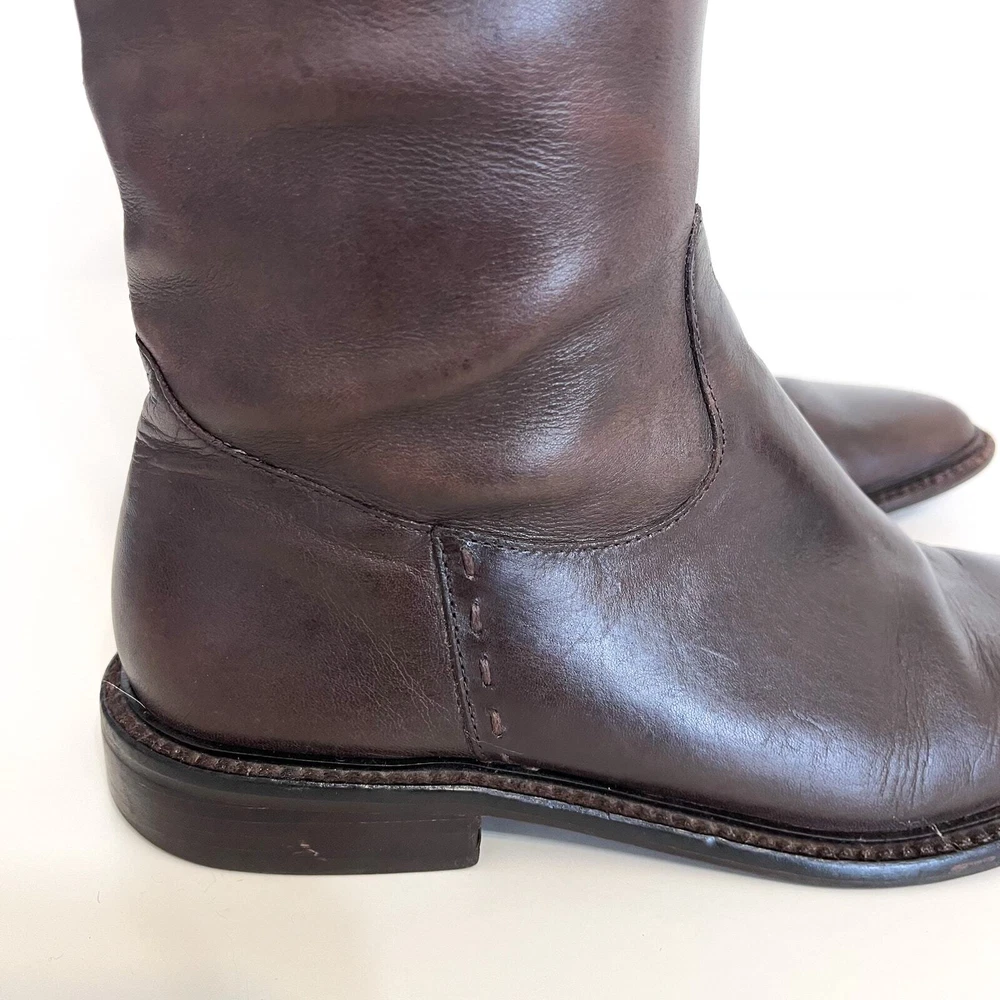 Espresso Chocolate Brown Expedition Vintage 90s Y2K Leather Eddie Bauer Safari Riding Equestrian High Definition Western Rodeo Cowgirl Boots Butter soft leather Pointed Toe Zip closure Made in Brazil Sz 8M Heel 1 Shaft 13 Circumference 15 Good condition with some wear to soles pls see all pics