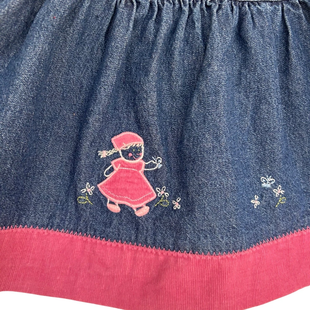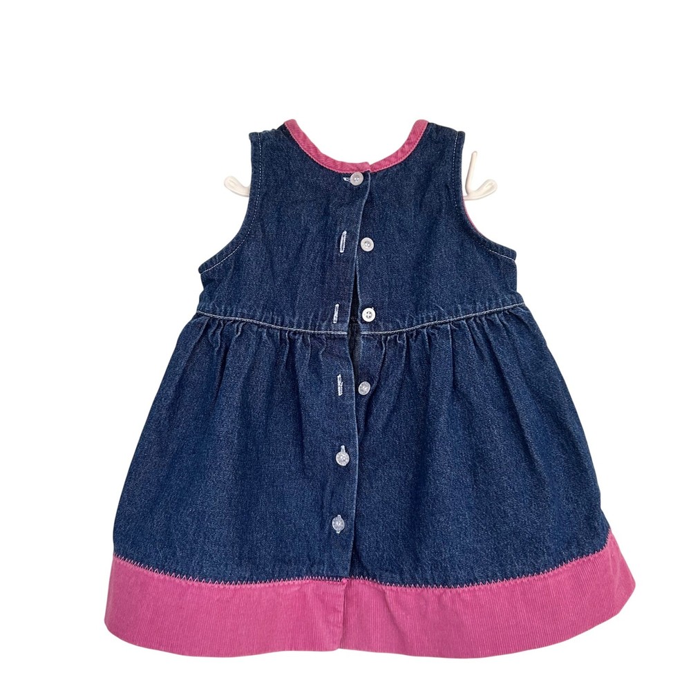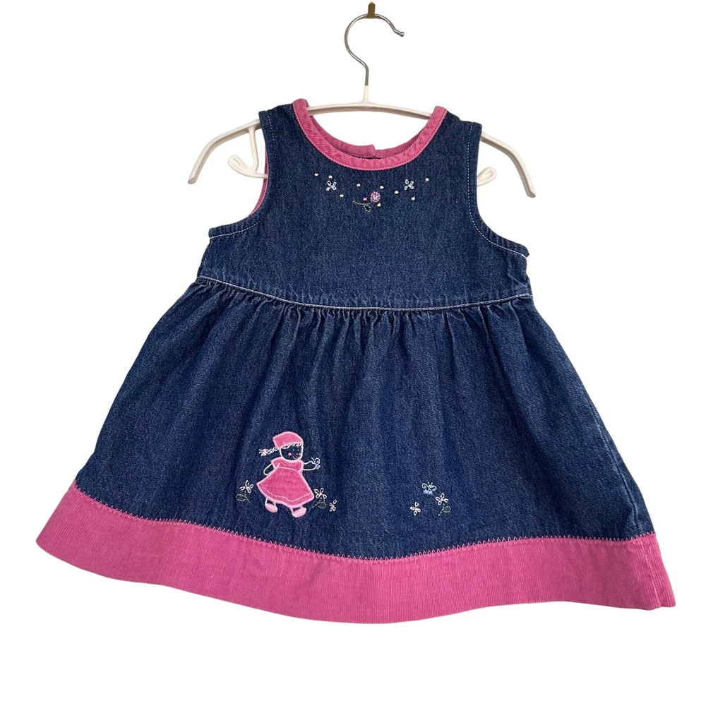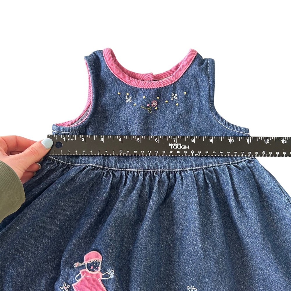 A charming denim dress for little girls featuring sweet floral embroidery and a playful girl applique. Accented with a vibrant pink corduroy trim and matching pink neckline, this sleeveless dress has a comfortable gathered waist and a classic button-front closure. Perfect for a day at the park or a casual family outing. Measurements: • Chest: 12 in • Length: 18 in Style: Fit & Flare Department: Girls Dress Length: Knee Length Occasion: Casual, Party Character: Unicorn Girl Fabric Type: Denim Season: Spring, Summer, Fall Sleeve Length: Sleeveless Pattern: Floral Material: 100% Cotton Neckline: Round Neck Sleeve Type: Cap Sleeve Closure: Button Theme: Special Occasion Keywords: denim dress, girls dress, baby girl, toddler girl, embroidered dress, applique dress, pink trim, sleeveless, button front, casual dress, play dress, summer dress, spring dress, jean dress All items come from a smoke free, golden retriever dog friendly home. All of items unless NWT or Dry Clean Only are washed with Tide or according to care tag if hand wash only. We try our best to disclose any flaws with items, if we miss something please reach out and let us know. We can offer combined shipping on all our items. Please compare the items measurements to something you already own. We ship M-F within business days.