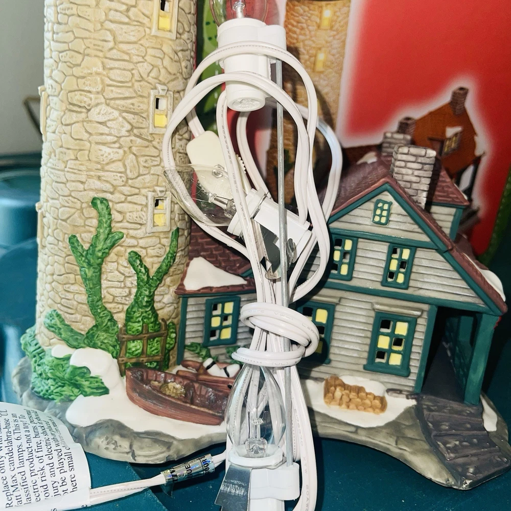 Elevate your festive display with the Santa's Workbench Collection Victorian Series' Cape Christiana Lighthouse. A charming addition to any Christmas village setup, this medium-sized porcelain piece boasts intricate detailing and a cozy nautical theme, complete with a lighthouse design that captures the spirit of the season. Measuring at 11.5 inches in height, 8.25 inches in length, and 4 inches in width, this asymmetrical ornament fits seamlessly in any room, creating a warm and inviting atmosphere. Crafted in 2000, this retired collectible comes packaged in a box and foam for safekeeping, making it a timeless treasure for holiday enthusiasts and collectors alike.