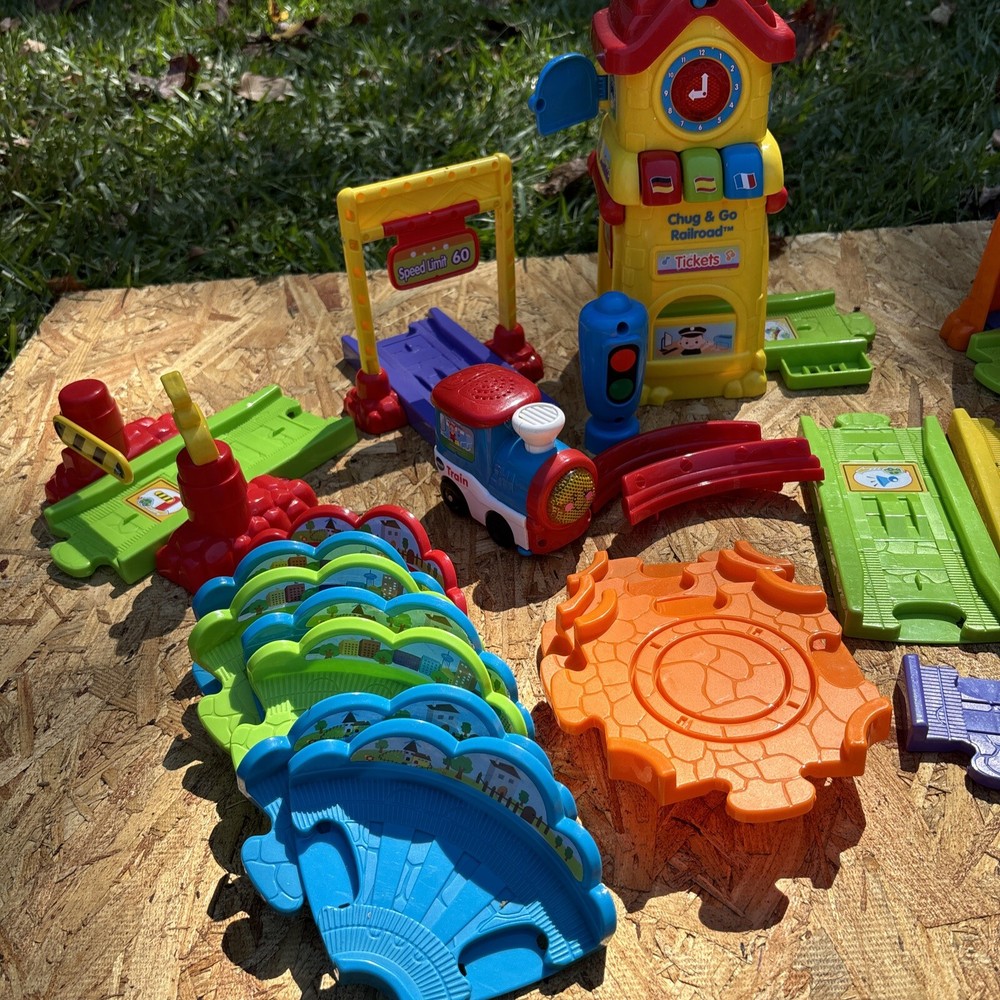 Enhance your child's imaginative play with this VTech Go! Go! Smart Wheels Train Station Playset. This playset is designed to provide hours of fun for kids aged 1-5 years. The set includes a train station with a functioning train track, a ticket counter, a turnstile, and a bell tower. It also comes with a variety of accessories such as trains, passengers, and cargo. The VTech Train Station Playset is perfect for both boys and girls and is made in China with high-quality materials. This playset is an excellent addition to any child's toy collection and will promote their creativity and motor skills. Get your little one this Train Station Playset today and let the fun begin! Missing a stop arm