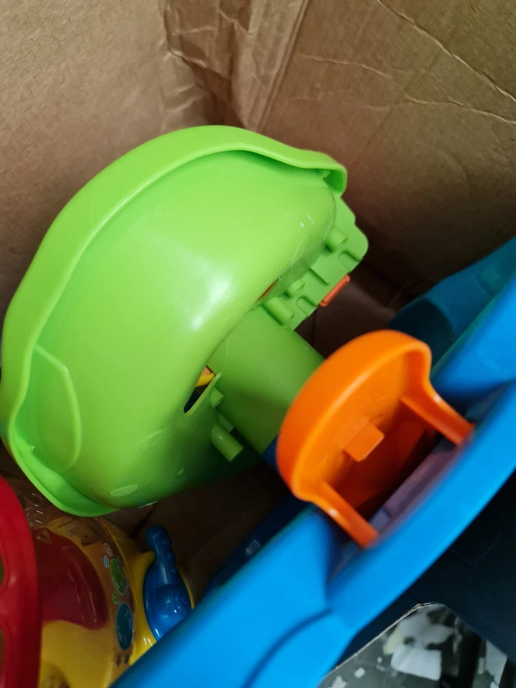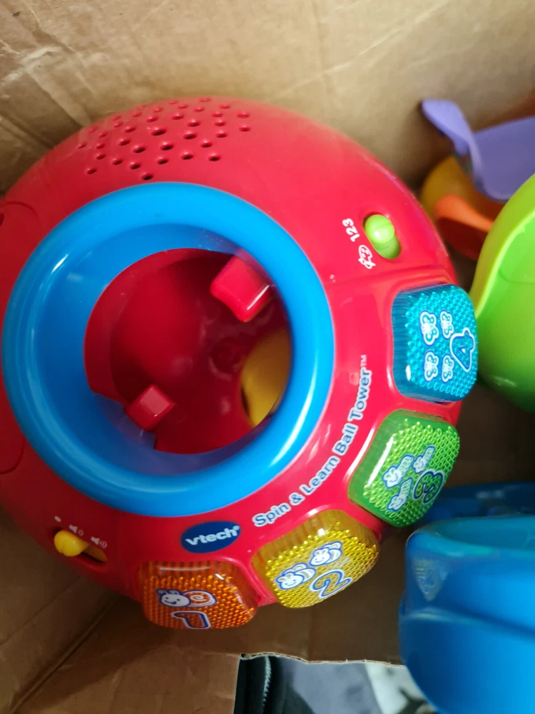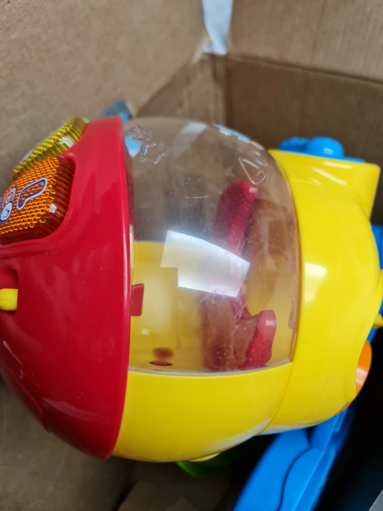 Item is in good condition with some scratches, box has cosmetic damage. Includes 2 balls only. Identifies animals or color on each ball when dropped into the dome Counts the balls as they drop on the track Light up buttons introduce your little one to colors, numbers & insects 2 modes: color & sound More than 100 songs, melodies, sounds, phrases PRODUCT DETAILS 12.99''H x 17.72''W x 7.28''D Age: 9 - 36 months
