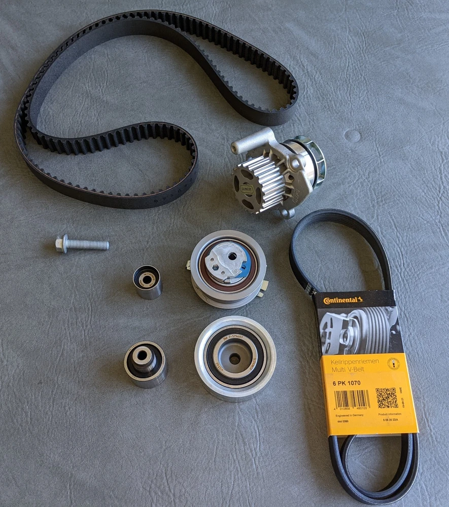 Complete timing belt kit for all Passat TDI with CKRA engine code. This includes 2012 - 2014 Passat TDI models. Check your timing belt cover to be sure this is correct (see picture). These will say "CKR" on the sticker on the timing cover (see picture). This kit contains only the highest quality parts. Kit inc ludes the following ALL NEW parts. OEM INA timing belt 03L 109 119 E OEM INA or LITENS timing belt tensioner 03L 109 243 F Three OEM INA rollers 03L 109 244 D 03L 109 244 J 03L 109 244 G HEPU metal impeller water pump 03L 121 011 J with o ring OEM Continental (6PK1070) or original VW serpentine belt 03L 903 137 T FREE SHIPPING IN THE US. Shipping will be USPS Priority Mail, UPS ground or FedEx ground, at my option, usually based on shipping cost. THOUSANDS OF SATISFIED CUSTOMERS ON THE MANY VW ITEMS I CARRY. I'VE BEEN IN THE VW PARTS AND REPAIR BUSINESS SINCE 1996. See my other listings for quality VW parts. http://stores.ebay.com/metalmanparts