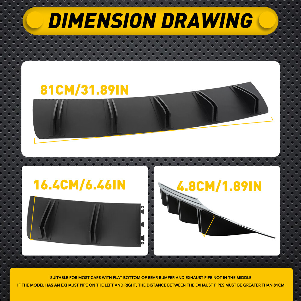 Fit for: Suitable for most cars with flat bottom of rear bumper and exhaust pipe not in the middle. If the model has an exhaust pipe on the left and right, the distance between the exhaust pipes must be greater than 81cm. Specifications: Product Material: ABS Color: Matte black (as pictures show) Placement on Vehicle: Lower, rear Features: 【Reduce Air Resistance】 This shark fin diffuser designed to increase a vehicle's aerodynamic performance and improve the stability of vehicle during fast driving. 【Excellent Appearance】 For VW Rear Bumper Lip Spoiler Shark Fin Spoiler Wing Lip Diffuser Matte Black M Fit for: Suitable for most cars with flat bottom of rear bumper and exhaust pipe not in the middle. If the model has an exhaust pipe on the left and right, the distance between the exhaust pipes must be greater than 81cm. Specifications: Product Material: ABS Color: Matte black (as pictures show) Placement on Vehicle: Lower, rear Features: 【Reduce Air Resistance】 This shark fin diffuser designed to increase a vehicle's aerodynamic performance and improve the stability of vehicle during fast driving. 【Excellent Appearance】 Shark fin and clean lines design with beautiful appearance to decorate your car, which gives your vehicle a more aggressive racing look. 【ABS Material】 Made of ABS material with high-quality, waterproof, durable functions and will not easy to break. 【Universal Fit】 Universal fit for most cars, please measure the size before purchasing. Note: Please confirm the size and make sure that there is enough space to install before purchasing!!! Professional installation is required. Packaging Include: 1 x Rear Shark Fin Bumper Diffuser 1 x Screws kit 1 x Double sided adhesive tape ABOUT US For VW Rear Bumper Lip Spoiler Shark Fin Spoiler Wing Lip Diffuser Matte Black M Fit for: Suitable for most cars with flat bottom of rear bumper and exhaust pipe not in the middle. If the model has an exhaust pipe on the left and right, the distance between the exhaust pipes must be greater than 81cm. Specifications: Product Material: ABS Color: Matte black (as pictures show) Placement on Vehicle: Lower, rear Features: 【Reduce Air Resistance】 This shark fin diffuser designed to increase a vehicle's aerodynamic performance and improve the stability of vehicle during fast driving. 【Excellent Appearance】 Shark fin and clean lines design with beautiful appearance to decorate your car, which gives your vehicle a more aggressive racing look. 【ABS Material】 Made of ABS material with high-quality, waterproof, durable functions and will not easy to break. 【Universal Fit】 Universal fit for most cars, please measure the size before purchasing. Note: Please confirm the size and make sure that there is enough space to install before purchasing!!! Professional installation is required. Packaging Include: 1 x Rear Shark Fin Bumper Diffuser 1 x Screws kit 1 x Double sided adhesive tape FAQ Shipping Returns Contact Us Payment Why swith to LED? LEDs not only give your vehicle a clean, modern look but, with proper use, will outlast any halogen bulb and HID bulb! Low energy draw, high lumen output, and instant on/off LED technology out shines stock bulbs in every way. Which bulbs are used in my vehicle? Check Sylvania automotive lamp replacemnt guide , you can select the year, make, and model of your vehicle, then select the application you want to replace or upgrade from stock. What does CAN Bus mean? CAN Bus means Controller Area Network Bus. This system monitors your vehicle and reports operating conditions. CAN Bus systems are commonly found in European vehicles such as BMW, Audi, Mercedes, Volkswagen, Porsche, and in many American vehicles. While most late model American vehicles have CAN Bus systems, it is always good to check with your vehicle dealer to see which system your vehicle has before purchasing electrical products. When do you need Warning Canceller? Some vehicles with cmplex internal computers(such as Audi,BMW,Jaguar,Mercedes,etc.) might report on-dash errors or flickering on the headlights. The warning canceller fixes the dashboard warning and flickering effect. Bulb Out Dashboard Error: On some vehicles, the dashboard will report as if you have a headlight bulb missing or burnt. It does not affect the headlights functioning, but the light on-dash will be on. The warning canceller fixes the issue. Flickering Issue: This happens when your vehicle does not recognize the new headlights installed. When turning the headlights on, the vehicle's computer does not understand the signal back from the headlights hence thinking they are still off. This triggers the headlight flickering effect. The warning canceller solves this issue. LED Advantages: Very low and efficient energy consumption than halogen bulbs & HID Bulbs Compared with HID bulbs, LED bulbs Light up instantly, no warm up period Low voltage protection, high precision constant current driver chip Longer lifespan than HID and halogen bulbs Light can be controlled easily in color and intensity Easy to install a LED headlight conversion kit (1) We will ship your item(s) within 24 hours. (2) We ship this item to US only via USPS first class mail. It usually takes 3-6 working days to deliver. How Long Will It Take to Receive My Refund? If you have emailed us for a refund ,once we have approved it ,after 60 days your money will be refunded. The estimated time for the refund to appear in your account is based on the payment method you use. Paypal is the only supported in NIGHTEYE Store. Please notify us within 30 days after you've received your purchased item. All return requests must be submitted through your eBay account. NOTE: Buyers pay for the return shipping fee. Items to be returned must be in resalable condition, for example: You do not satisfy the item quality Item do not fit your vehicle perfect Item can not reach your expectation The item arrived be broken You do not receive the item Parcel Lost Recei