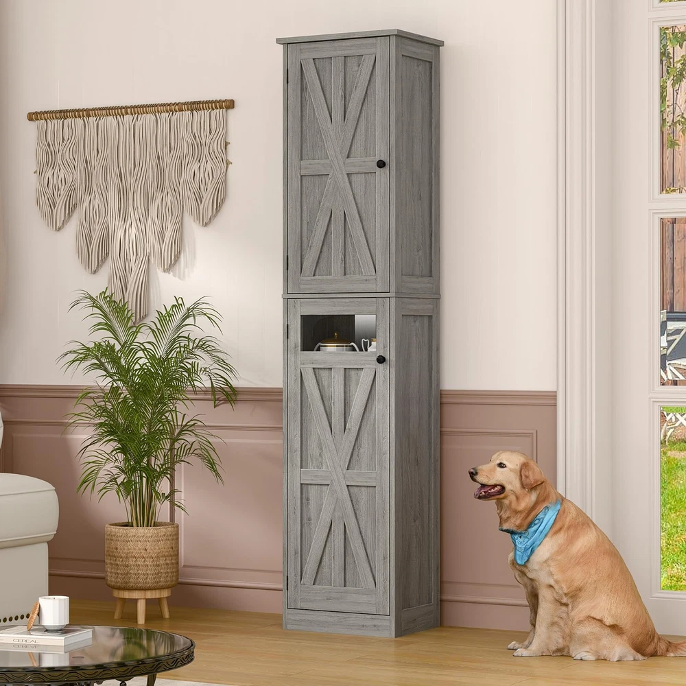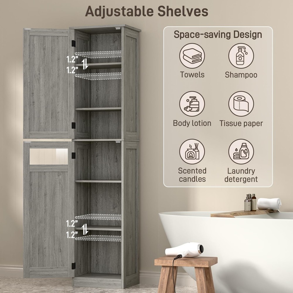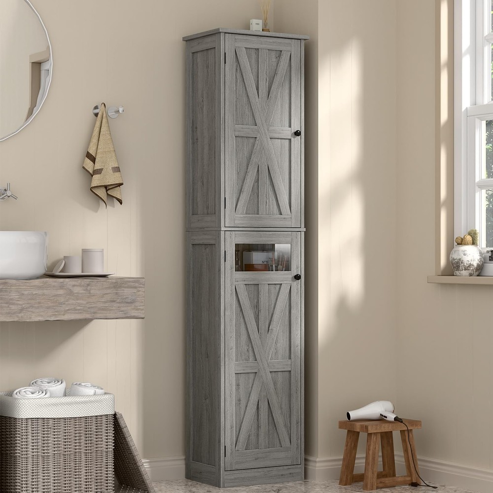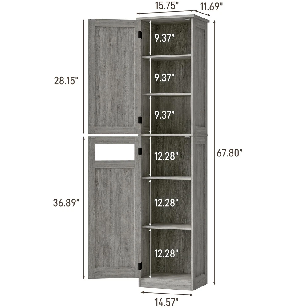 Vabches Tall Bathroom Cabinet, Slim Bathroom Storage Cabinet with Adjustable Shelves and 2 Doors, Narrow Floor Storage Cabinet for Bathroom, Kitchen, Living Room, Rustic Grey 【Clear Acrylic Door & Farmhouse Design】The combination of farmhouse and acrylic elementsis unique and charming. It not only retains the simplicity and naturalness of the farmhouse but also adds a sense of modernity. The acrylic door is translucent , allowing you to easily view the items inside the cabinet and easy access. It is a perfect combination of fashion and practicality. 【Perfect for Small Spaces】Sized at 11.69"D x 15.75"W x 67.80"H, this narrow yet tall cabinet makes full use of vertical space, increases storage capacity, and saves space for the bathroom. It is very suitable for narrow spaces. 【Multifunctional Storage Cabinet】This versatile cabinet is simple and elegant with extremely strong storage capacity. It is an excellent choice for uses such as bathroom cabinets and kitchen cabinets. Its multifunctional design can be easily integrated into any scene and perfectly blends with bathrooms, living rooms, and kitchens, adding convenience and beauty to home life. 【Flexible Storage Space】This bathroom cabinet has two adjustable shelves that can be freely adjusted according to the size of different items to meet different storage needs. The flexible storage space design makes storage no longer restricted. Whether it is small items or large items, a suitable storage location can be found. 【Sturdy, Stable, and Safe】This tall bathroom cabinet adopts a high-quality solid wood reinforced base and has better stability and support capacity. The anti-tipping accessories effectively avoid the occurrence of potential dangers and provide reliable protection for you and your family. 【Easy to Assemble】Its assembly is very simple. Vabches products will all include instructions. All parts have detailed labels and step-by-step instructions on the instructions. In just about 40 minutes, you can get a practical floor storage cabinet. 【Outstanding Client Service】No matter if you encounter any problems when installing the product or using the product, please feel free to contact us at any time. Our excellent customer service team will provide you with a satisfactory solution within 24 hours! Let you have a pleasant shopping experience.