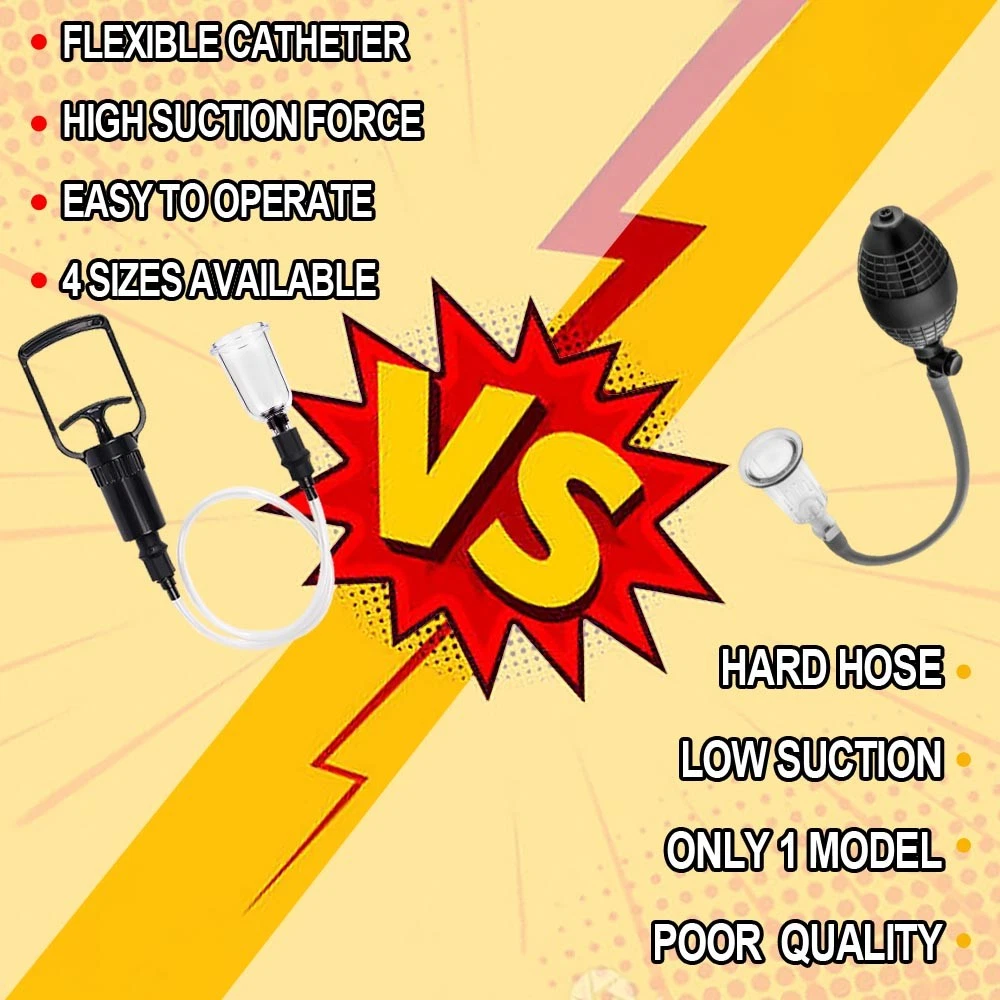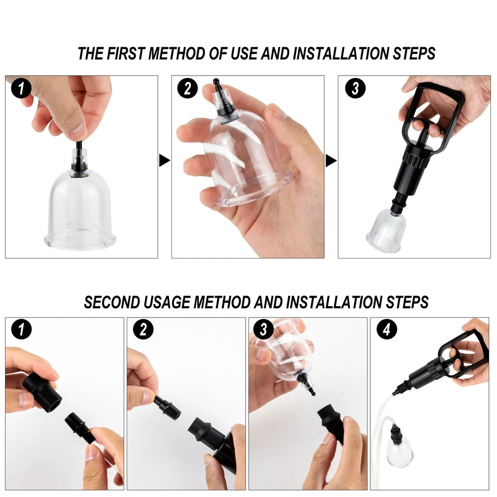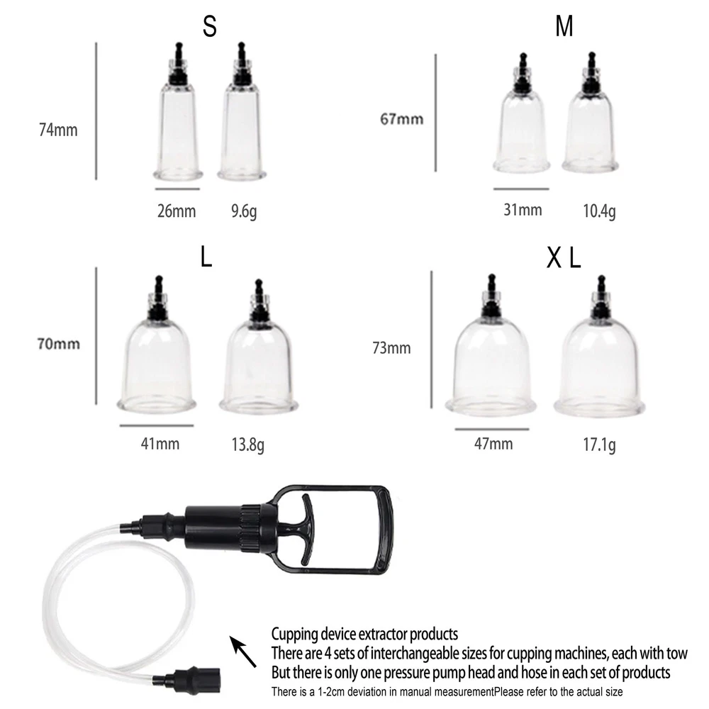 Discreet Package Description 【Breast suckers for women pleasure】 Satisfy women in function and appearance.The suction cup wraps your breasts, and will bring you unlimited passion. 【Manual suction-sucking Breast design】 This Breast suction cup toy can be firmly attached to different breast shapes and sizes. You just have to gently and continuously press the handle it can tightly wrap around your breast until it is completely attached on, during the use, feel the suction, just like a man sucking and licking your Breast. Instructions for use : Lubricate the cylinder & the intended area as well. Slowly begin to work the pump.there will be a slight pressure on your skin as air is draw from the tube. For beginners, it is important to start this process slowly to avoid discomfort. Continue pumping/releasing air until you've found a level of pressure suitable you. A friendly reminder to stop using it if any discomfort occurs during use. CAUTION This product is for personal use, please make sure the product is clean before and after use. We recommend the use of a cleaner,but you can also use soap and tepid water for its cleaning.lt should not be used on swollen or inflamed areas of skin lacerations. It is recommended to use lubricants in order to intensify the pleasure bringing an experience and more sensual satisfaction. No medical claims are guaranteed or implied by the use of these products. Feature: Material: Silicone + ABS Suction Cup Size: S,M,L,XL(as shown in the figure) S: Base Diameter: 2.6cm/1.02", Height: 7.4cm/2.91" (Approx.) , weight of one size S sucker: 9.6g M: Base Diameter: 3.1cm/1.22", Height: 6.7cm/2.64" (Approx.) , weight of one size M sucker: 10.4g L:Base Diameter: 4.1cm/1.61", Height: 7.0cm/2.8" (Approx.) , weight of one size L sucker: 13.8g XL:Base Diameter: 4.7cm/1.85", Height: 7.3cm/2.87" (Approx.) ,weight of one size XL sucker: 17.1g Package Contents: 8x breast suckers(1pair S &1pair M &1pair L &1pair XL) 1x pull rod 1x connecting pipe (send in discreet) Notes: Due to the light and screen setting difference, the color of the item may be slightly different from the pictures. Please allow slight dimension difference due to different manual measurement. Contact: Please contact us first if you have any questions.