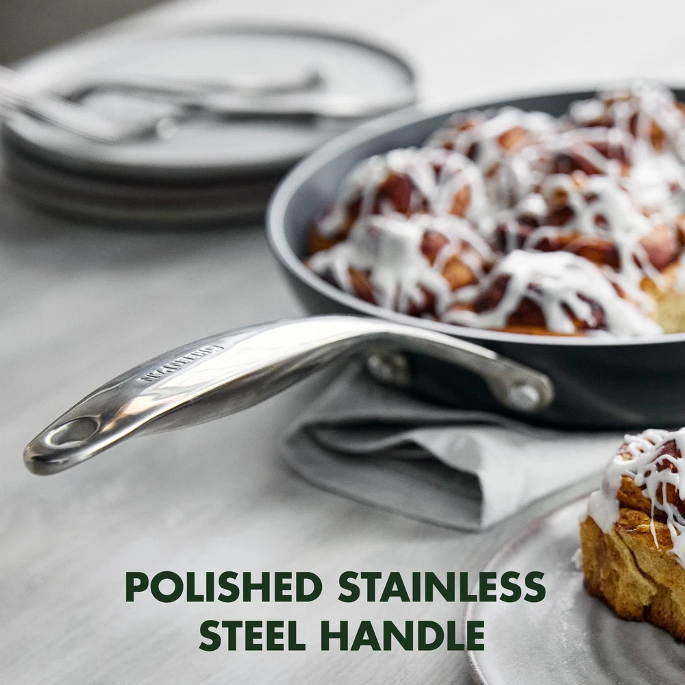 CUTTING-EDGE CERAMIC NONSTICK: Infused with diamonds, 's metal utensil safe ceramic nonstick offers remarkable durability, balanced heating, and effortless cleanup. TOXIN-FREE: Our signature ceramic nonstick coating is free of PFAS, PFOA, lead or cadmium. AWARD-WINNING PERFORMANCE: Our Valencia Pro has set the standard for ceramic nonstick winner of the best ceramic nonstick 8” and 11” frypans from America’s Test Kitchen and 2023 Good Housekeeping Sustainable Innovation Award. DUOFORGED HARD ANODIZED BODIES: Unbelievably tough and scratch-resistant, these pans are pre-treated before they’re hard anodized for extraordinary durability. MAGNETO INDUCTION BASES: Optimized for performance on all stovetops, including induction. DURABLE GLASS LIDS: Offer an easy way to check on your meal in progress, oven safe up to 425°F EASY TO CLEAN: Most messes wipe clean, plus these pans are dishwasher safe for effortless cleanup. COMFORTABLE STAINLESS STEEL HANDLES: Mirror-polished stainless steel handle stays cool thanks to a V-shaped cutout. PERFORMS WHERE YOU NEED IT: Oven and broiler safe up to 600°F (lids up to 425°F) and suitable for all stovetops, including induction.
