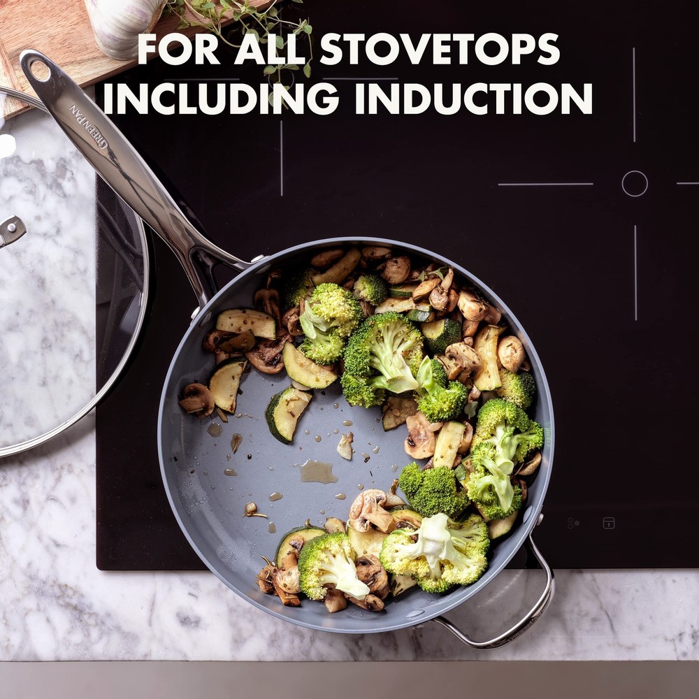 CUTTING-EDGE CERAMIC NONSTICK: Infused with diamonds, 's metal utensil safe ceramic nonstick offers remarkable durability, balanced heating, and effortless cleanup. TOXIN-FREE: Our signature ceramic nonstick coating is free of PFAS, PFOA, lead or cadmium. AWARD-WINNING PERFORMANCE: Our Valencia Pro has set the standard for ceramic nonstick winner of the best ceramic nonstick 8” and 11” frypans from America’s Test Kitchen and 2023 Good Housekeeping Sustainable Innovation Award. DUOFORGED HARD ANODIZED BODIES: Unbelievably tough and scratch-resistant, these pans are pre-treated before they’re hard anodized for extraordinary durability. MAGNETO INDUCTION BASES: Optimized for performance on all stovetops, including induction. DURABLE GLASS LIDS: Offer an easy way to check on your meal in progress, oven safe up to 425°F EASY TO CLEAN: Most messes wipe clean, plus these pans are dishwasher safe for effortless cleanup. COMFORTABLE STAINLESS STEEL HANDLES: Mirror-polished stainless steel handle stays cool thanks to a V-shaped cutout. PERFORMS WHERE YOU NEED IT: Oven and broiler safe up to 600°F (lids up to 425°F) and suitable for all stovetops, including induction.