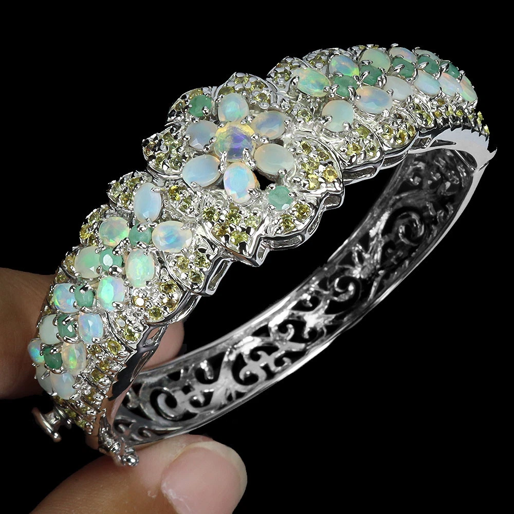 Valentine 925 Silver Bangle Oval Fire Opal Emerald Sapphire Gemstone Jewelry PRODUCT ID BG2411050095 PRODUCT TYPE Bangle TYPE OF METAL 925 Sterling Silver PLATE 14k White Gold Ring size/Length (inches) 2 MAIN STONE Fire Opal OTHER GEMS Emerald, Sapphire TOTAL weight 33.09 gram (total weight of silver + stone) DIMENSION * STONE 1.5 TO 4.0 X 3.0 MM. * DIAMETER 2.0 INCHES. * FACE BANGLE 61.0 X 21.0 MM. MAIN STONE SHAPE Oval Cut MAIN STONE COLOR Rainbow Full Flash CLARITY/GRADE If LUSTER Amazing TREATMENT Unheated ORIGIN Ethiopia HARDNESS 5 IF very high quality & Free from inclushions. VVS high quality with very slight inclushions. SI1 Good Quality with slight inclusions visible to the naked eye. SI2 include becoming prominent to the eye. I included. "Delivering excellent with eBay" we accept: PayPal payment which we prefer. FOR US BUYER >>>> PLEASE READ We are genuine seller from THAILAND. All products are originally 100% manufactured in THAILAND. Every items are 100% exported directly from THAILAND. However, we use shipping provider 'Webgistix' who is a US distributor. The items will be allocated from Webgistix's distribution office in Las Vegas, NV by USPS. Please understand that the tracking status will show starting from Las Vegas when you track the items. Feel free to ask for more details. We ship item(s) from Thailand to Worldwide in 24 hr. ( in working day ) after the payment was cleared. $10 - flat rate for a registered airmail, takes 20 - 40 days delivery. Thailand Post stops the service to Latvia, Lithuania, Malta, Moldova, Estonia, Georgia and Israel. Fedex cost up on destination with insure and online tracking. Destinations Asia NORTH AMERICA, CANADA EUROPE (WEST) EUROPE (EAST), SCANDINAVIA, MIDDLE EAST SOUTH AMERICA, AFRICA FEDEX EXPRESS (minimum) $70 $70 $70 $80 $80 Fedex rate will be charged by weight and destination area. A combine package is limited at 10 items within 10 days. Do not send your payment directly, just contact us to request total when you finish bidding (ebay cannot automatic combine items). Any single item weigh over 300ct is not eligible to combine. Buy over US $999 in one payment (10 items within 10days), Get Free FedEx shipment. TAX/CUSTOM: Custom fee is out of seller control. Buyer is responsible for the cost at arrived. Please give us an opportunity when you have questions with item received. Buyer can make agreement on discount or return the shipping in case of damage item. Seller is located in Thailand. So please contact seller for the instruction before return any item. Your communication is most important to solve the problem. International buyers note: Import duties, taxes, and charges are not included in the item price. These charges are the buyer's responsibility. Please check with your country's customs office to determine what these additional costs will be prior to bidding/buying.