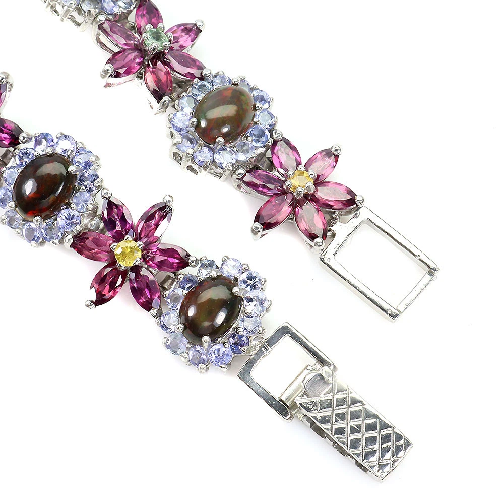 Valentine 925 Silver Bracelet Oval Black Opal Sapphire Rhodolite Gemstone Jewelry PRODUCT ID BA2307010196 PRODUCT TYPE Bracelet TYPE OF METAL 925 Sterling Silver PLATE 14k White Gold Ring size/Length (inches) 7.5 MAIN STONE Black Opal OTHER GEMS Rhodolite Garnet, Sapphire, Tanzanite TOTAL weight 23.18 gram (total weight of silver + stone) DIMENSION * STONE 2.5 TO 8.0 X 6.0 MM. * TOTAL LENGTH 7.5 INCHES. * FACE BRACELET 160.0 X 14.0 MM. MAIN STONE SHAPE Oval Cabochon MAIN STONE COLOR Hot Rainbow Luster CLARITY/GRADE If LUSTER Amazing TREATMENT Clarity Enhanced ORIGIN Ethiopia HARDNESS 5 IF very high quality & Free from inclushions. VVS high quality with very slight inclushions. SI1 Good Quality with slight inclusions visible to the naked eye. SI2 include becoming prominent to the eye. I included. "Delivering excellent with eBay" we accept: PayPal payment which we prefer. FOR US BUYER >>>> PLEASE READ We are genuine seller from THAILAND. All products are originally 100% manufactured in THAILAND. Every items are 100% exported directly from THAILAND. However, we use shipping provider 'Webgistix' who is a US distributor. The items will be allocated from Webgistix's distribution office in Las Vegas, NV by USPS. Please understand that the tracking status will show starting from Las Vegas when you track the items. Feel free to ask for more details. We ship item(s) from Thailand to Worldwide in 24 hr. ( in working day ) after the payment was cleared. $10 - flat rate for a registered airmail, takes 20 - 40 days delivery. Thailand Post stops the service to Latvia, Lithuania, Malta, Moldova, Estonia, Georgia and Israel. Fedex cost up on destination with insure and online tracking. Destinations Asia NORTH AMERICA, CANADA EUROPE (WEST) EUROPE (EAST), SCANDINAVIA, MIDDLE EAST SOUTH AMERICA, AFRICA FEDEX EXPRESS (minimum) $70 $70 $70 $80 $80 Fedex rate will be charged by weight and destination area. A combine package is limited at 10 items within 10 days. Do not send your payment directly, just contact us to request total when you finish bidding (ebay cannot automatic combine items). Any single item weigh over 300ct is not eligible to combine. Buy over US $999 in one payment (10 items within 10days), Get Free FedEx shipment. TAX/CUSTOM: Custom fee is out of seller control. Buyer is responsible for the cost at arrived. Please give us an opportunity when you have questions with item received. Buyer can make agreement on discount or return the shipping in case of damage item. Seller is located in Thailand. So please contact seller for the instruction before return any item. Your communication is most important to solve the problem. International buyers note: Import duties, taxes, and charges are not included in the item price. These charges are the buyer's responsibility. Please check with your country's customs office to determine what these additional costs will be prior to bidding/buying.