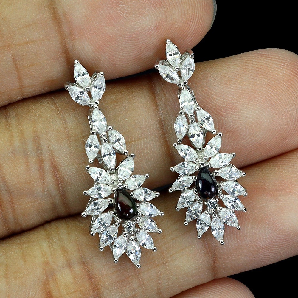 Valentine 925 Silver Earrings Pear Black Opal Natural Gemstone Jewelry