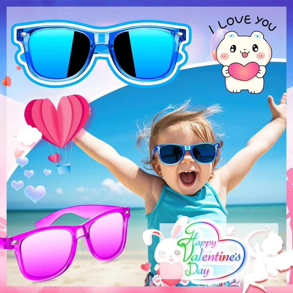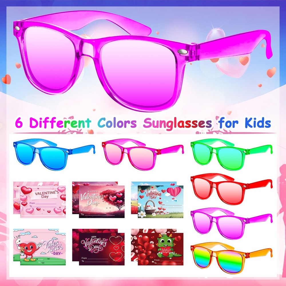 Valentine Cards for Kids Classroom with Kids Sunglasses Party Favors ,Kids Sunglasses Party Favor with Valentines Day Cards, Party Gifts for Kids Classroom, Party Favors Exchange Cards for Kids Product Details Style: 12PCS Kids Sunglasses with Valentines Day Cards Brand: Jallgedk MPN: 2024-12YJ-XC-WYD-TM UPC: 635393426467 EAN: 0635393426467 Color: Multicolor Brand: Jallgedk Unit Count: 12.0 Count Item dimensions L x W x H: 3 x 1.2 x 3 inches Occasion: Valentine's Day Manufacturer: Jallgedk UPC: 635393426467 Age Range (Description): Kid Product Dimensions: 3 x 1.2 x 3 inches Item Weight: 7.8 ounces Country of Origin: China Item model number: 2024-12YJ-XC-WYD-TM Manufacturer recommended age: 3 years and up Department: kids Summer Party Favors for Kids: What makes our kids sunglasses bulk different from other sunglasses for kids is our frame is translucent and bright colors which are very attractive. Each of toddler sunglasses bulk will show different colors in different lights and angles. In the sunlight, the frames of the kids glasses look like they are sparkling. And kids will be the most dazzling! Each pair of bulk sunglasses has gorgeous lenses. Receiving these kids will be over the moon Customized Design for Kids Aged 3-8: The frame of each pair measures 5" W x 1 3/5" H x 5 L. Sized specifically for kids ages 3-8. These neon sunglasses for kids are made from lightweight materials with high-quality lenses, ensuring children feel comfortable wearing them without any pressure or discomfort. And the edge of our kids sunglasses bulk is smooth and light, and won't hurt kids' skin or have any burden UV 400 Eye Protection and Polarized Lens: Our bulk kids sunglasses for kids with UV 400 protected lenses with added polarization for eliminating glare which can lighten the fatigue state of your kids eyes, at the same time, kids sunglasses can maintain clear vision and natural color. Perfect for the summer beach party, pool party, and outdoor activities High Quality and Safety Material: The kids party sunglasses are made of comfortable and sturdy polypropylene material, durable and light in weight. It is not like some other sunglasses for kids will burden the nose and ears. The frame is so comfortable that you can't even notice it is on your face. Perfect for kids to have some outdoor activities. It won't limit kids' play and will protect their eyes from the dazzling sunlight Best Gift Idea: Still struggling with what to get for Easter gifts, classroom exchange gifts, birthday return gifts, class prize? Neon glasses party supplies are great for beach pool party, graduation party, giveaway carnival prize, goody bag stuffers, holiday gift, party favors for kids 3-8. Tuck these kids sunglasses bulk into treat boxes, goodie bags, or give them out as party favors or rewards, the kids will absolutely love them