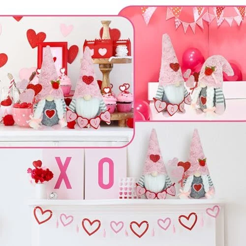 Return Policy Fast Delivery Trusted seller Valentine Gnomes Decorations for Home Valentines Day Tiered Tray Decor Pink Valentine Gnomes Plush Scandinavian Tomte Elf Holiday Gnomes Ornaments Valentines Day Gifts for Her Product Description 【Valentines Gnomes Plush】These adorable Mr. and Mrs.valentines gnomes plush with heart shaped balloon, cute LOVE sign in hands, hats decorated with lovely rose and red love heart,create the festive touch on valentines day. And Gnomes will bring us good luck, happiness, warmth and a little magical to your home decorations. 【Ideal Valentines Day Gift】Well crafted valentines gnomes plush is an ideal valentines day gifts for her. The adorable heart shaped balloon and red love heart are perfect for spreading valentines day happiness. Unique gnomes design are 100% match valentines day decor gnomes decorations for home tiered tray decor valentines table decorations. 【Valentines Day Decorations】The valentines gnomes will be an ideal addition to valentines day, LOVE sign and red rose decor can easily make your main centerpiece of your valentines day theme decorations, valentines table decorations. Perfect for displaying on a tiered tray, table, shelf or mantel, fireplace. Unique and cute style will bring family happiness. 【Premium Material & Handcrafted】The valentines day gnomes are made of plush and felt by professional artisans.The cute pink hats are made of Sunday Angora furry, very soft touch. 【Weighted Base & Poseable】 Each valentines gnomes decor has a built-in soft iron wire in hats. Flexiable hats make you can position it as you wish. Their bottom are plain to supoort stand on their own, and can be put on anyw in the home. Fire place, mantle , kitchen, living room. Shipping Returns Payment Shipping Shipping is FREE to all addresses other than APO/PO boxes in the lower 48 states. All our stock ships from US-based warehouses. Shipped via USPS or UPS (depending on location and package weight) Unless stated otherwise, all orders will ship within 24-72 hours of your payment being processed. Check our feedback to see the great reviews of FAST shipping we offer. Returns Seller does not accept returns Payment We currently accept payment via eBay managed payments only. Once payment is cleared, we will dispatch your shipment within 1-3 business days. Please refer to the "Shipping" tab for more information regarding shipping speed to your destination.