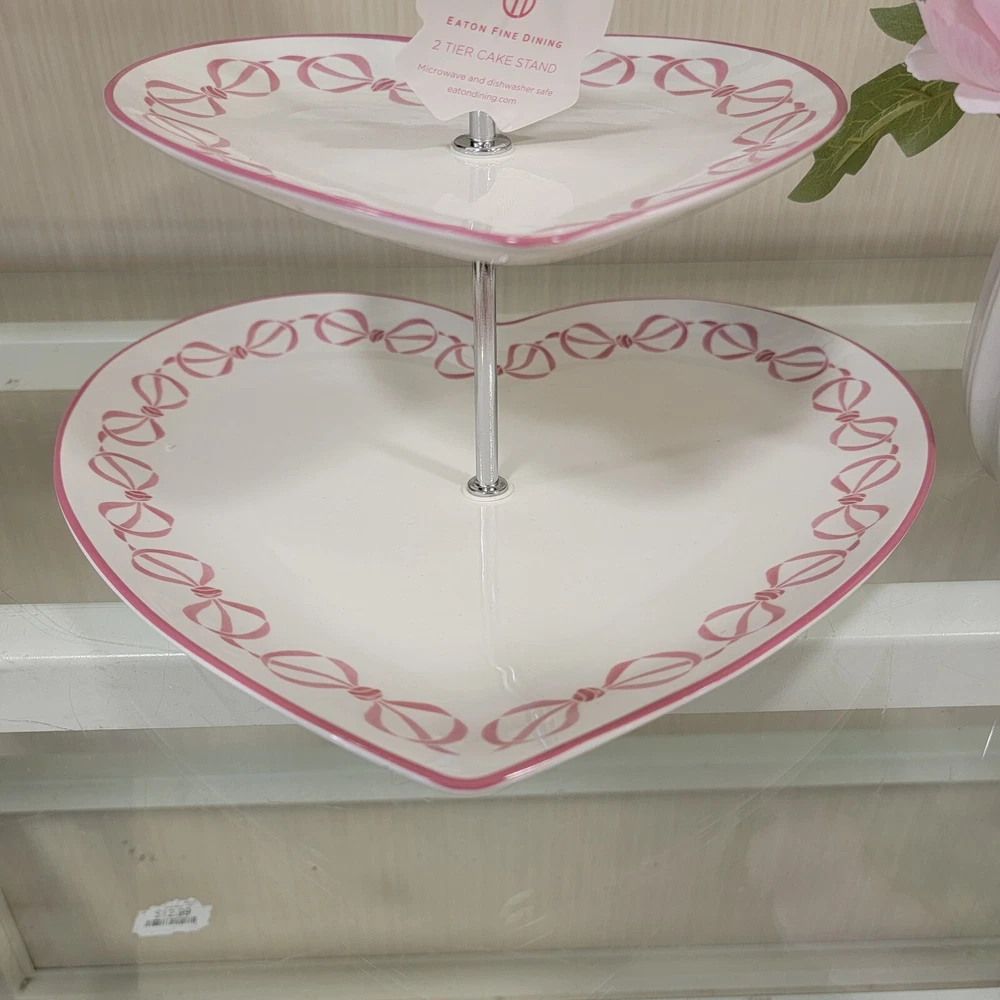 This beautiful Valentine's Day collectible from Home Style is the perfect addition to your holiday decor. The heart-shaped tiered tray bow is made of high-quality ceramic and features a stunning white color that will surely catch the eye of anyone who sees it. It's a great way to add some festive flair to your home without breaking the bank. Will look amazing and filled up with petit heart-shaped cupcakes. This item is sure to become a cherished part of your holiday collection for years to come. Will be carefully wrapped and shipped.