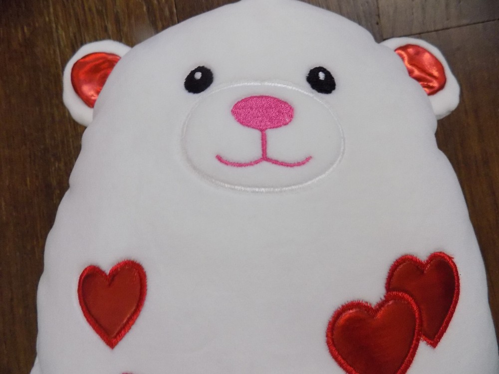 Occasion:Valentine's DaySeller Notes:βLike new and adorable!βCountry/Region of Manufacture:ChinaCharacter Family:Squishy White BearAnimal:BearType:pillow stuffed animalSize:Small (6-14 in)Brand:Seasonal SensationsColor:White metallic red pink blackFeatures:Retired, Washable, squishy
