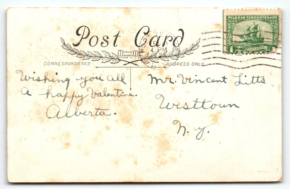 Posted with cancel and stamp. Antique original vintage post card. Has tear on top edge, ink cancel marks on front, corner dings, and age wear. Stock #val151. Additional postcards are in our store. All post cards are old originals and may or may not have writing on back. Bundle and save by using cart and making single payment.