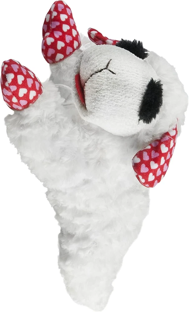 Classic lambchop with heart patterned ears and feet just for Valentine's Day! Approximately 10.5" long Made of super soft plush and a squeaker inside MULTIPET Valentine Lamb Chop 10.5"
