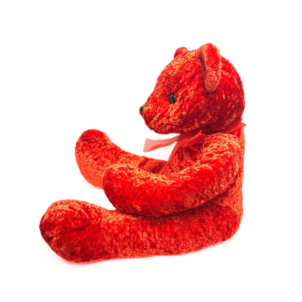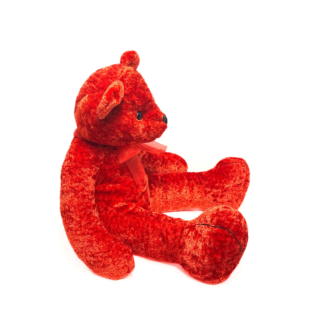 Valentines Day Soft Red Crushed Velvet Stuffed Plush Teddy Bear : Condition : Very Good Pre-Owned ( No Smells / No Stains ) : Dimensions : Height - 18in x Width - 10in : Features : - Attached Red Ribbon - Large Round Plastic Black Eyes - Large Floppy Legs / Arms / Head - Soft Red Velvety Exterior : Thank you for your interest. : Shipping : - Plush will be securely packaged to ensure a damage-free delivery. - Mailed Within 3 Business Days.