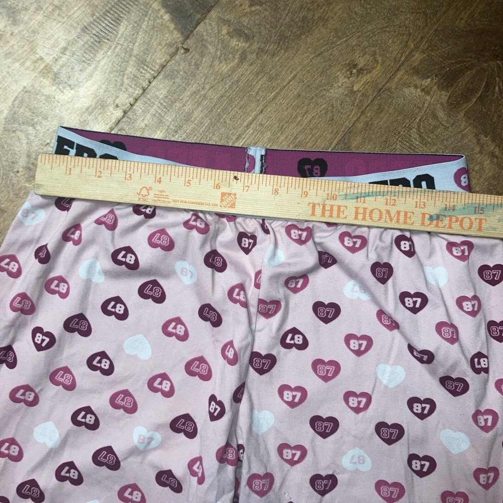Get ready to bed in style with these Aero Valentines 87 Heart Pajama Pants. The pink color and heart theme make them perfect for any occasion, whether it's winter, summer, fall, or spring. Made for women and in size L, these pajama pants are comfortable and chic. The brand Aero is known for their quality products and this sleepwear is no exception. Indulge in the colorful design and cozy feel of these pajama pants, perfect for lounging around the house or getting ready for bed.