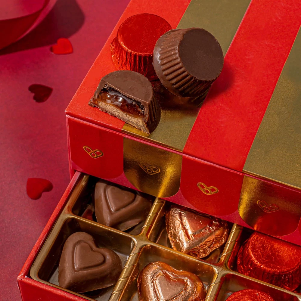 Decadent Belgian Chocolate Assortment: Indulge them this Valentines Day with a gourmet gift basket! Gift box includes a luxurious collection of 32 Belgian chocolate truffles, Peanut Butter and Jelly Cups and Caramel Cups. Featuring an exquisite variety of flavors, from classic Dark Chocolate Sea Salt Caramel to creamy White Chocolate Vanilla Mousse, crafted by . Elegant Two-Tier Design: Presented in a sophisticated two-tier gift box, with the bottom shelf sliding out like a drawer for easy access, showcasing the indulgent chocolate treats in an elegant manner. Gourmet Chocolate Experience: Delight in the velvety smoothness and burst of flavors from the finest Belgium chocolate, meticulously crafted to offer a truly indulgent and unforgettable taste experience. Ideal Gift Choice: Whether for a special occasion, a thoughtful treat, or a personal indulgence, this assorted chocolate gift box is sure to impress and delight chocolate connoisseurs and sweet-tooth enthusiasts alike. CELEBRATE LOVE with this elegant yet affordable gift idea. This little treasure has delighted recipients ranging from employees and employers to parents and children. Some women do not like crusty spa bath gift sets or perfume scented candles, but who doesn’t love a delicious box of chocolate? It’s versatile packaging works for multiple occasions like Valentines, Anniversary, Mothers Day, Easter, Birthdays, Sympathy, Thank You or to simply say I love you.
