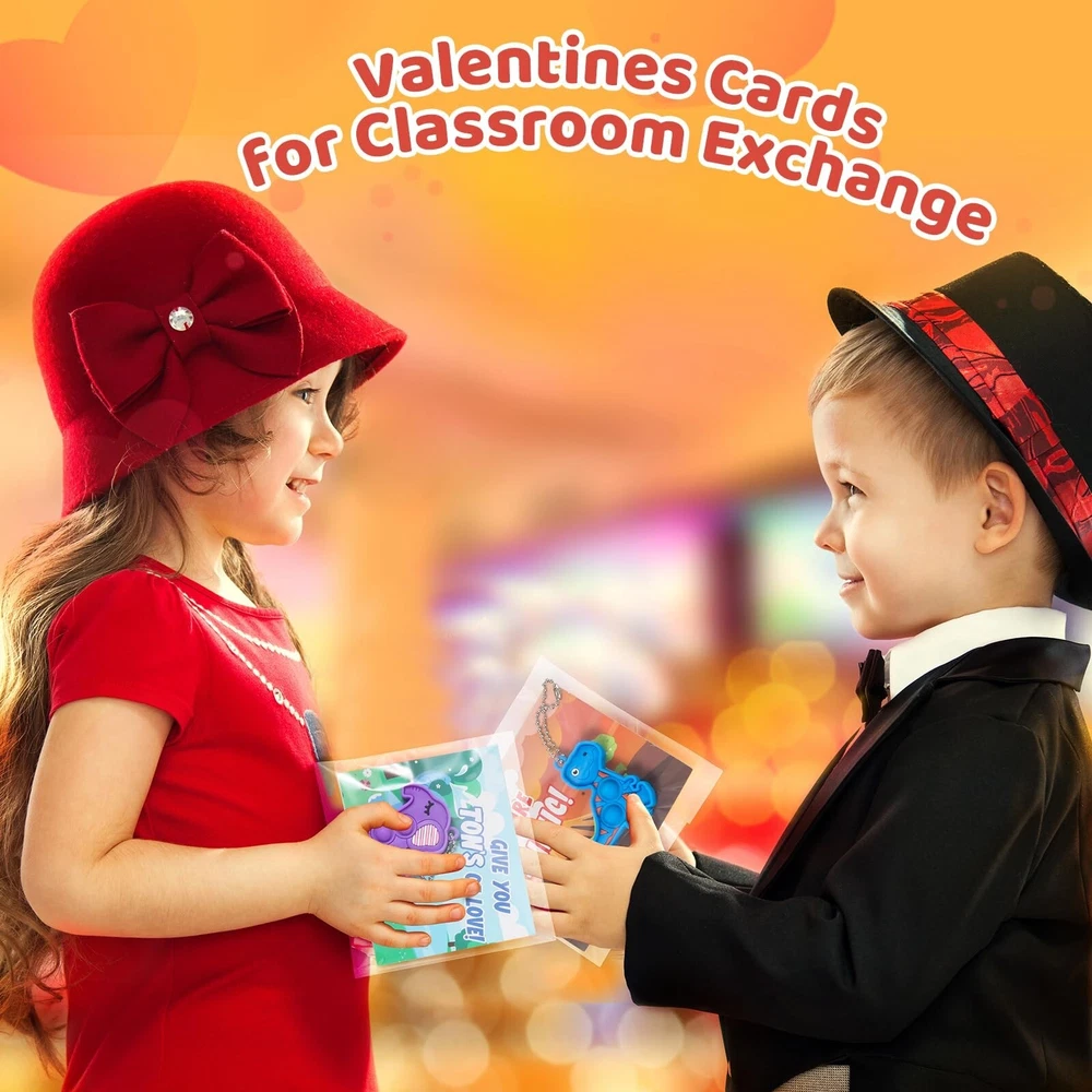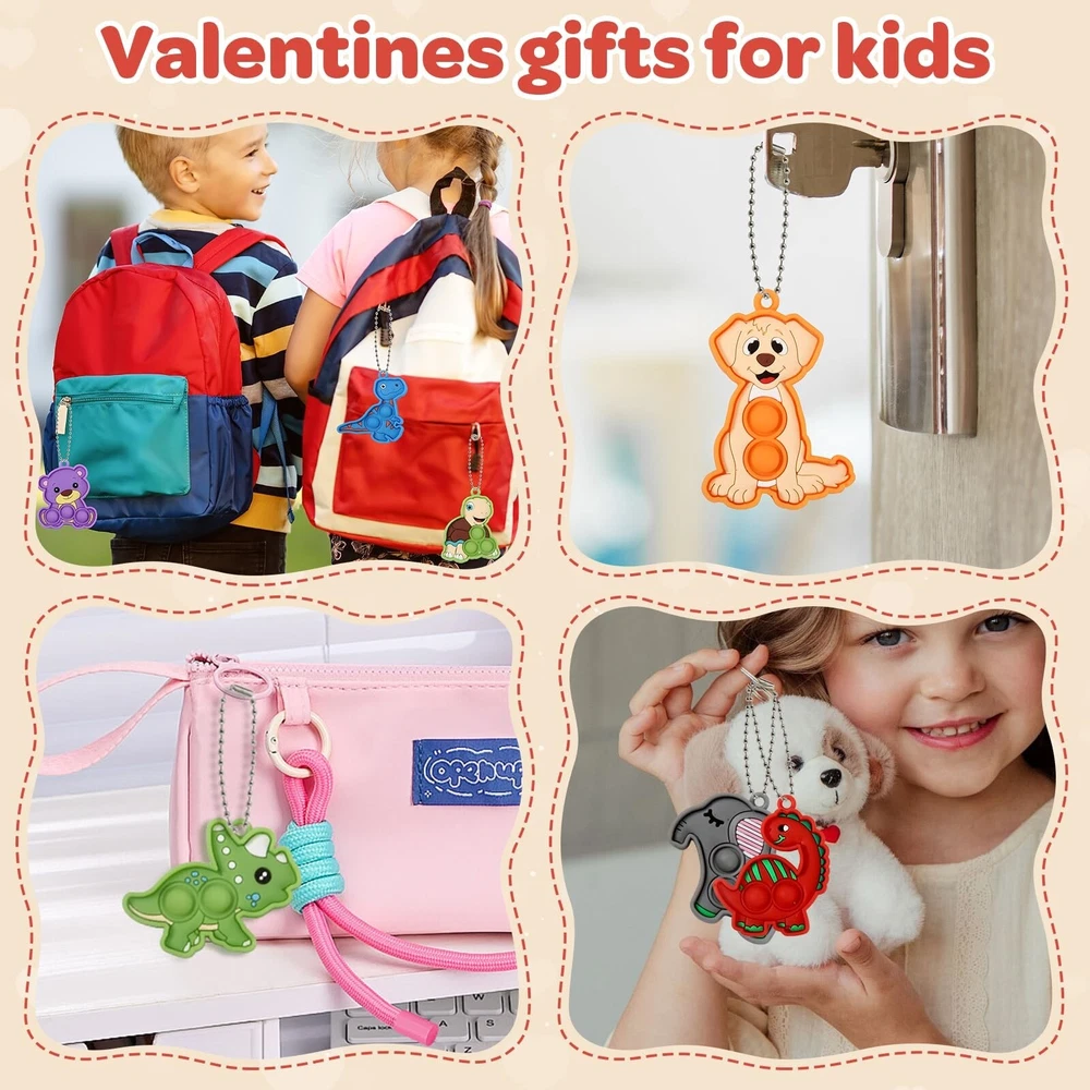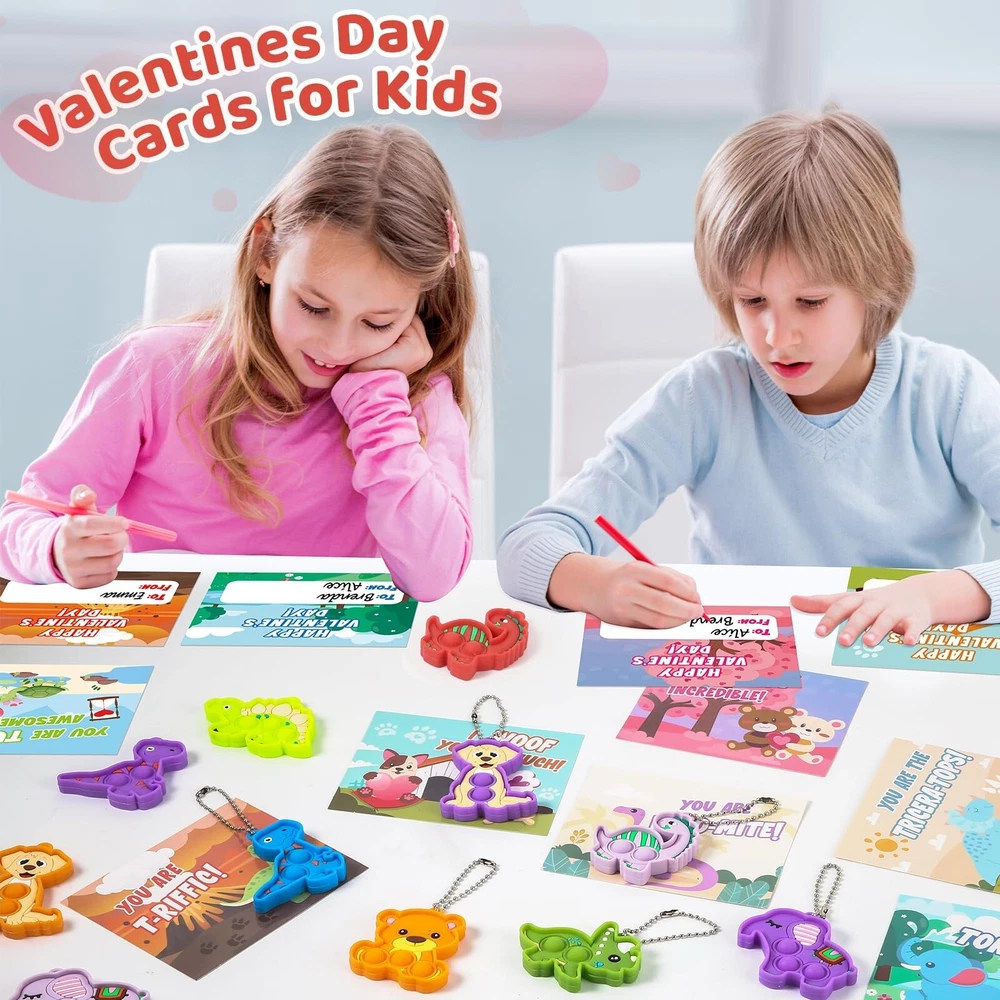 Valentines Day Cards for Kids, 24 Pack Pop Fidget Toys Keychains for Kids with Valentines Day Cards for Valentine School Party Favors for Kids Boys Girls, Kids Exchange Valentines Day Gifts Product Details Color: Colorful Material: Silicone Theme: Valentines Special Feature: Lightweight Included Components: 24pcs Keychains, 24pcs Valentines Day Gifts Cards Closure Type: Button Pattern: Animal Print, Heart Brand: AuroTops Item dimensions L x W x H: 0.1 x 0.1 x 0.1 inches Number of Pieces: 24 Style: Novelty Shape: Rectangular Product Dimensions: 0.1 x 0.1 x 0.1 inches Item Weight: 11.3 ounces Country of Origin: China Manufacturer recommended age: 36 months - 15 years Department: girls Manufacturer: AuroTops Super Value PackIdeal for children who adore animals, AuroTops Pop Fidget Toys come with 24pcs, each paired with a Valentine's Day card. Featuring 8 distinct animal shapes in 3 colors for each, they make wonderful classroom gifts for kids on Valentine's Day. Premium Silicone KeychainsThese mini pop fidget toys in animal shapes are ideal for classroom Valentine's Day exchanges. Their small size and lightweight design allow them to be easily carried in pockets, hung on keys, or attached to bags. They bring endless fun to kids, classmates, family, and friends. Beautiful-Designed Valentine's CardsOur set includes 24 colorful Valentine's cards, printed on sturdy paper to ensure durability. Customize each card with your personal message, making them perfect for classroom exchanges or as heartfelt gifts for your child's classmates. Kids Valentines Day Party FavorsThese Valentine's greeting cards with pop fidget toys keychains toys are perfect for classroom exchanges, preschool or elementary school Valentine's parties, Valentine's events, or any Valentine's game prizes, love notes, party favors and more! They are the ideal Valentine's Day gift for boys and girls. AuroTops Valentine's Day Gift Cards will provide endless fun and entertainment for your kids! Enjoy Fun & Share LoveGive your little one a special Valentine gift instead of candy treats! Kids can write by themselves and give the cards and gift for their classmates, friends or family to express love for them. we believe that will bring you an unforgetable Valentine's experience. If you have any problem, please contact us within 24 hours, our customer service team will try our best to solve the problem for you.