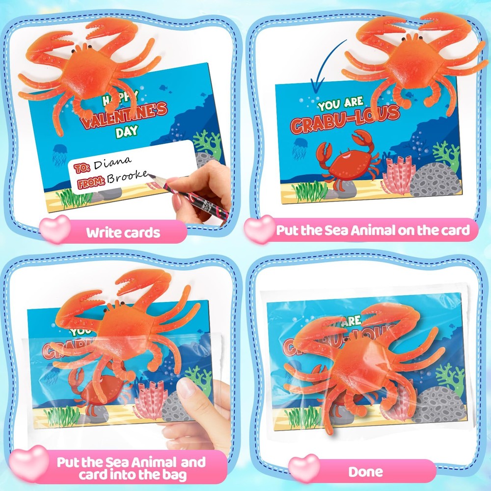 This adorable Valentine's set is a total hit! My kids loved the cute ocean animal toys that magically expand in water—such a fun surprise! The matching cards made sharing with classmates easy and special. Great quality, super affordable, and perfect for classroom exchanges. The kids couldn’t stop talking about their growing sea creatures! A fantastic way to combine fun and friendship for Valentine’s Day. Highly recommend for a unique, interactive gift!