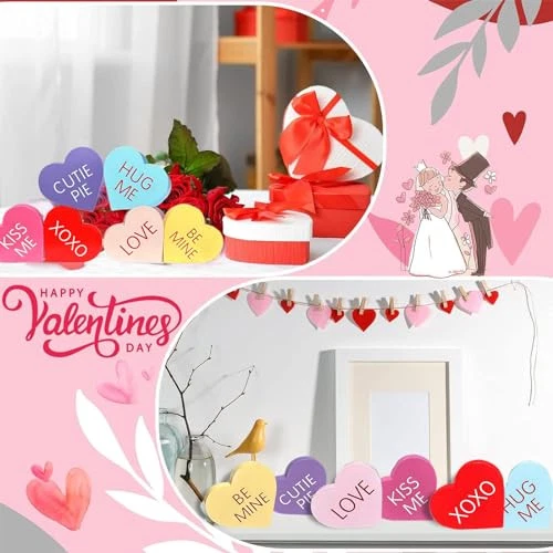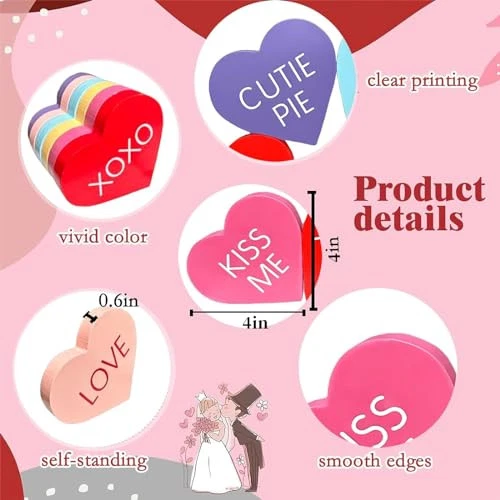 30 Days Return Policy Fast Delivery Trusted seller Valentine's Day Decor Heart Table Decorations Sign, 6 Pcs Valentines Day Wooden Tiered Tray Decor, Romantic Classic Valentines Day Table Centerpieces for Home Table Valentines Day Gifts Product Description Value Valentines Day Table Decor Set: You will get 6 pieces of Valentines Day heart wood signs in a great variety of styles. Each sign has unique love phrase and different color, including "CUTIE PIE", "BE MINE", "KISS ME", "XOXO", "HUG ME", "LOVE". which can express your lasting and sincere love to your loved ones, and the cute colors can also bring a colorful and vibrant sense to your room. Self-Standing Design: Heart Valentine's day wood signs measuring about 2.5 x 2.5 x 0.6 inches each. Enough to stand on tiered tray or stand on the table smoothly without relying on extra stand Quality Wood and Delicate Craftsmanship: Valentines Day Heart decorations are made of natural wood, All wooden pieces have the rustic look from being sanded., The pattern and texture are clear, the surface is smooth; They are solid and good at looking, have no peculiar smell and would not fade. Versatile Decorative Applications: Valentine decorations for home can be matched with other Valentines style elements, to bring different decorative effects, fit for most Valentine themed occasions, Decorating your home, kitchen, porch, dining room, coffee bar, restaurant, Create a romantic atmosp for your Valentine's Day celebrations Valentines Gift Options: Surprise your loved ones with this Valentines day decor aesthetic, A first-choice gift to present to your families, friends, relatives, neighbors, colleagues and classmates on occasions like birthdays, housewarming parties and wedding parties ! Shipping Returns Payment Shipping Shipping is FREE to all addresses other than APO/PO boxes in the lower 48 states. All our stock ships from US-based warehouses. Shipped via USPS or UPS (depending on location and package weight) Unless stated otherwise, all orders will ship within 24-72 hours of your payment being processed. Check our feedback to see the great reviews of FAST shipping we offer. Returns As our valued customer, we will do our best to make sure the product you receive arrives to you on time and as expected. If you are not satisfied with your purchase, please contact us within 30 days of receiving your order to process a return. Payment We currently accept payment via eBay managed payments only. Once payment is cleared, we will dispatch your shipment within 1-3 business days. Please refer to the "Shipping" tab for more information regarding shipping speed to your destination.
