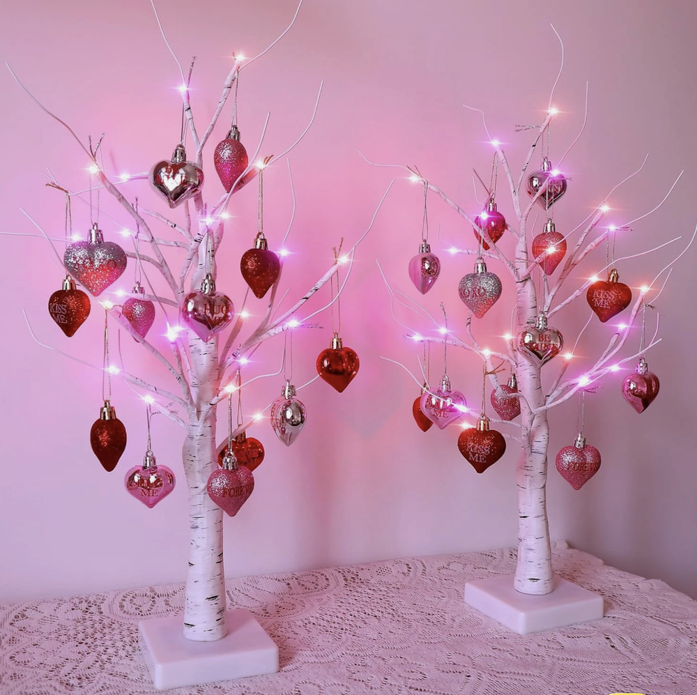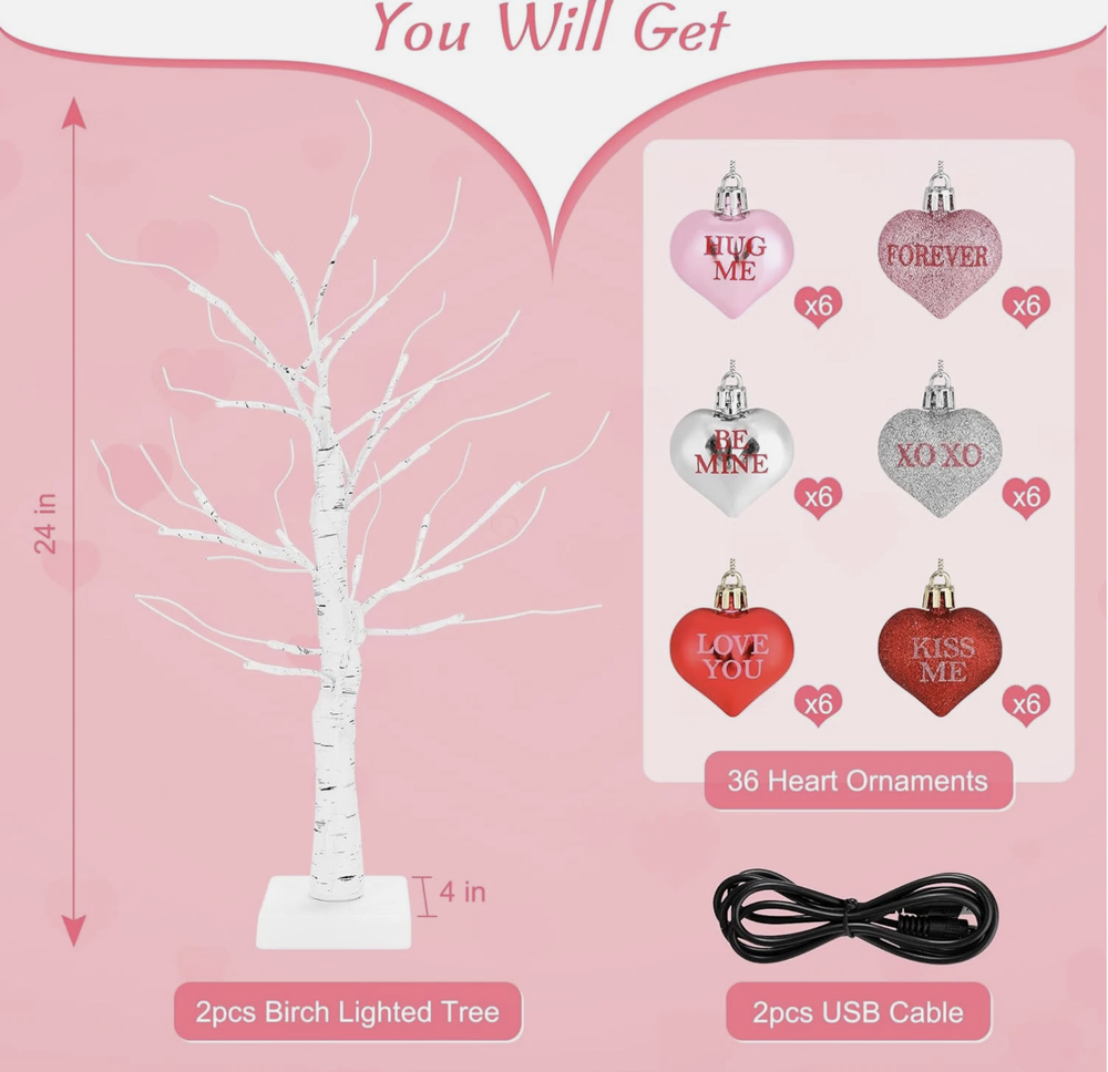 ---Icqovd's Romantic Valentine's Day Decoration : This 24-inch lighted tree, adorned with 60 LED lights and 18 heart ornaments, adds a romantic touch to your Valentine's Day, wedding, anniversary, or any special occasion. ---Dual Power Options : Conveniently powered by either 3 AA batteries (not included) or a USB cable (included), this versatile tree can be placed anywhere without the need for a power outlet. ---Flexible & Adjustable Branches : Crafted from durable PVC, the flexible branches can be easily adjusted to create the perfect natural tree shape, suiting your decorative needs. ---Versatile Uses : Perfect for decorating your home, bedroom, party, table, fireplace, patio, bar, office, and more, this charming tree enhances the festive atmosphere of any space. ---Thoughtful Gift Idea : Given as a Valentine's Day gift or for any other special occasion, this decoration tree is a heartfelt present that brings joy and festivity to your loved ones. 【Romantic Valentines Decorations】: This Lighted Valentines Day Tree with 60 LED Lights and 18 pcs heart ornaments decor. This beautiful Valentine's Day tree light is the romantic decoration for your Valentine's Day, wedding, anniversary or any special day. 【USB & Battery Powered】: This Valentine's day tree light has two power modes for you to choose from, one powered by 3 AA batteries (batteries not included), and the other powered by USB cable (included). 【Easy to Use】: Since this battery operated Valentines day lights can also be used without a plug, you can decorate it anywhere you want. 【Adjustable Branches】: The flexible branches are and you can easily adjust the shape of the Valentines day tree receiving it to the ideal natural tree shape. There are buttons on the base to control this lighted valentines day decor tree. 【Wide Range of Uses】: Use these cute valentines day table decor to decor your home, bedroom, party, table, fireplace, patio, bar, office, etc. Make your home and party more attractive and festive with these pretty valentine's day decor tree. Also a valentines day gifts for her/kids.