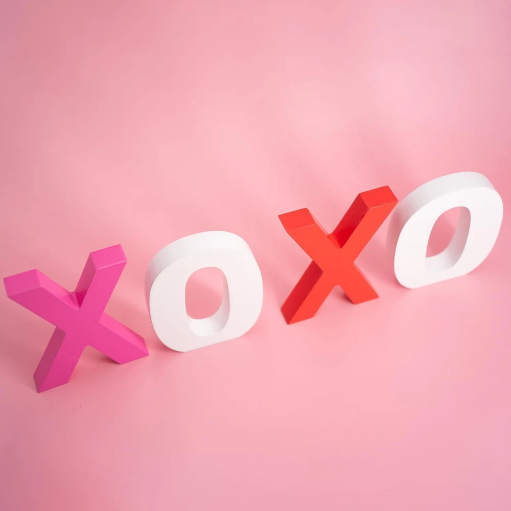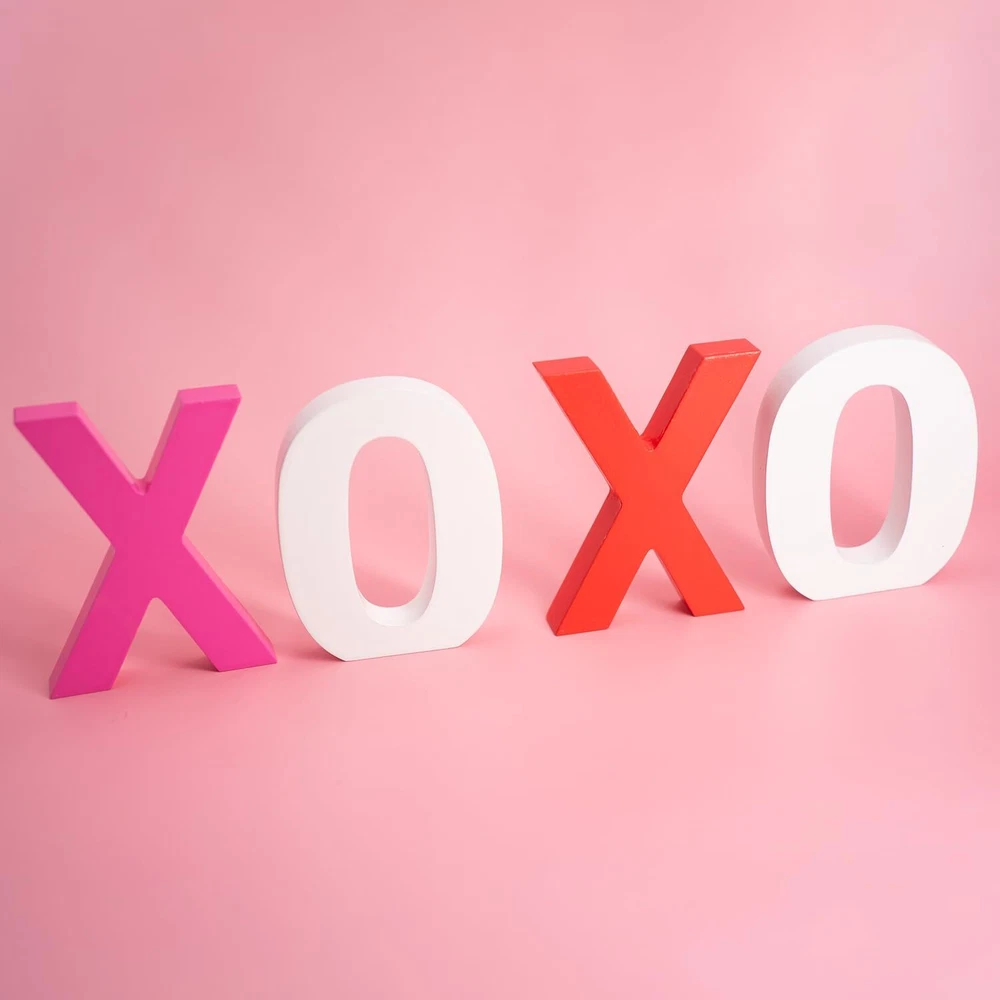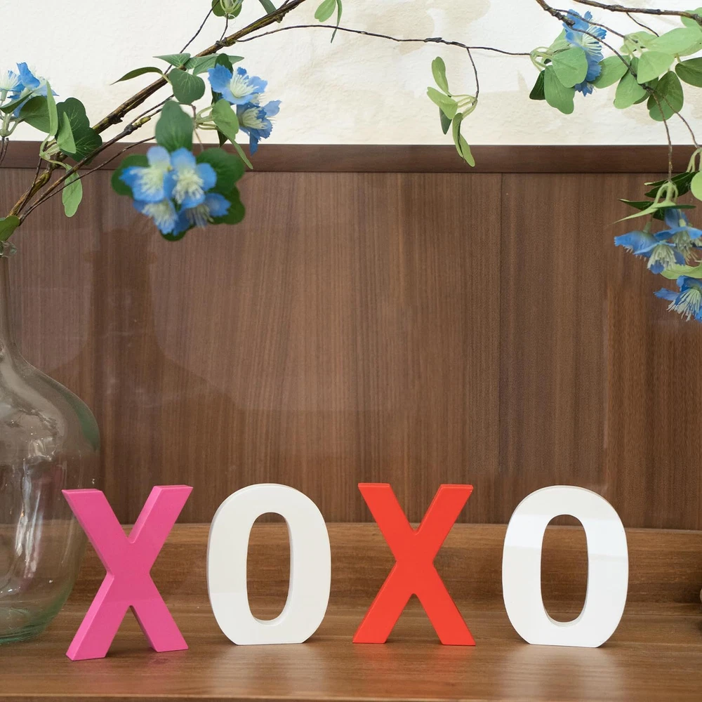Package Includes: 2 different color "X", 2 white "O" wooden signs, which can express your deep love, they are ideal choices to send to your lovers as ornaments or presents, they measure approx 4 x 4 x 0.6 inches, adorable and charming, adding more romantic charms to your Valentine's Day. Romantic Ornaments: theses wooden letter blocks are exquisite supplements for your ornaments needs, they can be placed at layer trays, shelves, tables, mantelpieces, coffee tables, decorative boards or anywhere, creating a sweet Valentine's Day atmosphere. High Quality Made: the xoxo valentines day decor are made of quality wood material and sprayed with quality paint, not easy to fade, firm and sturdy, not easy to deform or break, they feature smooth surface and polished edges, you can use them for a long term. Valenitnes Day Gifts for Him/Her: you can send wooden letter blocks decorations as warm and cute presents to your lovers and friends, they are also suitable for various occasions, such as housewarming, wedding, anniversary, Mother's Day, Thanksgiving's Day, Christmas and other occasions, can express your love, besides, they do not occupy too much space on the desk and shelf. Unique Design: the xoxo wooden signs can stand stably on the table without tipping over, and stand out in your Valentine's Day decor.