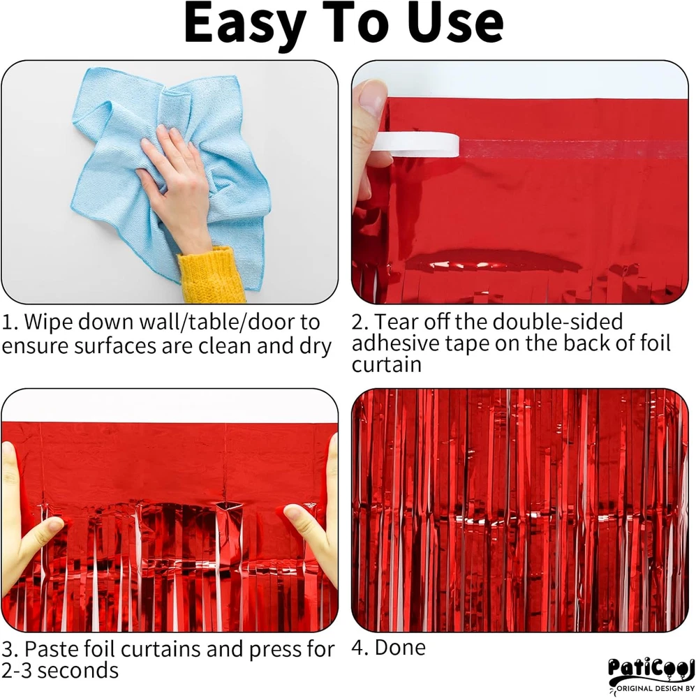 Store New Arrivals Add to Favorite View Feedback Contact Fast deliveries to the customer's home Quality customer service John Make the customers happy! Valentines Day Decorations Thicken Red Streamers, 4 Pack 3.2X8.2 FT, Red Birthday Decrorations Tinsel Backdrop Curtains, Foil Fringe Photo Backdrop for Christmas, Casino, Carnival Party Decorations Description 100% Pet ππΞΌπ¦ πππππππ | ππππ ππππππ - This red streamers is made of 23ΞΌm plastic film, not easy to fall apart. But due to the inherent characteristics of the material, it is still easy to tear even if we use thicker material, so you need to be very careful when using it. π.π π± π.π π π | π ππππ - This red metallic streamers are long enough to decorate doors or walls, you can freely adjust the length, width and thickness of them according to the desired scene. Paste them side by side for a wider range of decoration, stack 2 or more to achieve a thicker and denser effect. ππππ ππ πππ - Just peel off the double sided adhesive sticker on the back of the foil fringe curtains and stick it to a smooth surface, press it with your hands for about 5 seconds so it stays longer. It is not recommended to use it on painted walls or uneven surfaces. πππ ππππππππ ππππππππ - Perfect for birthday, carnival, casino, graduation, cherry, Valentines Day, Christmas, hollywood red carpet party decorations, and any other events you want to decorate. πππ & πππππ - This red backdrop curtains can be used with balloons, banners, LED light and various photo props, or use it with other tinsel backdrop of different colors to achieve the color combination that you desired! Product description 23ΞΌm Thicken 3.2 x 8.2 FT Tinsel Backdrop for Party Decorations Multiple color options The video showcases the product in use. The video guides you through product setup. The video compares multiple products. The video shows the product being unpacked. Thicken 23ΞΌm 3.2 x 8.2 FT Party Streamers Merchant Video Perfect for all kinds of themed party decorations The video showcases the product in use. The video guides you through product setup. The video compares multiple products. The video shows the product being unpacked. Thicken 23ΞΌm 3.2 x 8.2 FT Party Streamers Merchant Video 23ΞΌm Thicken Red Tinsel Backdrop for Valentineβs Day Decorations The video showcases the product in use. The video guides you through product setup. The video compares multiple products. The video shows the product being unpacked. 23ΞΌm Thicken Red Tinsel Backdrop Merchant Video You May Also Need for Red Party Decorations / Christmas Party Decorations Happy Birthday Balloons 16 inch Red Number Balloons 23ΞΌm Thicken Gold Tinsel Backdrop Curtains 23ΞΌm Thicken Silver Tinsel Backdrop Curtains 23ΞΌm Thicken Green Tinsel Backdrop Curtains 23ΞΌm Thicken Rose Gold Tinsel Backdrop Curtains 1 Blue 2 Silver 3 Purple 4 Gold 5 Black 1 Gradient Rainbow 2 Pastel Rainbow 3 Rainbow 4 Red White and Blue 1 Pink 2 Rose Gold 3 Hot Pink 4 Green 5 Red Batteries required No Product Dimensions 98.4 x 39.3 x 0.1 inches Item Weight 14.1 ounces Color Red Specific instructions for use Decorative Included Components 4 Pack 3.2 x 8.2 FT Red Foil Fringe Curtain Fabric Type 100% Pet Size 4 Packs ABOUT US We offer the best prices around on high quality products. Our E-store includes media such as books, movies, music and games while offering electronics, toys, sporting apparel, clothing, tools, general home, garden items and more. SHIPPING We are always working hard to ensure your package arrives as soon as possible. Please understand that some factors like weather, high postal traffic, and the performance of shipping companies are outside of our control. We offer free shipping to the lower 48 states and ship within 2 business days of payment, usually sooner. We do not accept P.O. Boxes. Please provide a physical address. For shipping outside of the continental USA, we only use eBay's Global Shipping Program. The item is shipped to KY and then sent to the rest of the world. International customers are responsible for all duties and taxes. Continue to 'check out' to calculate costs for shipping the item to your country. Messages regarding eBay's Global Shipping Program MUST be directed at eBay EXCLUSIVELY. RETURNS We offer a 30-Day Return Policy on items in which you are not completely satisfied with. You have the option of a full-refund or an exchange of the item. No returns are available on items shipped outside of the USA PAYMENT We accept PayPal. CONTACT US This page content is yet to come Please ad us to your favorite seller and visit again later Thank You CUSTOMER SATISFACTION We try our very best to make sure every customer is completely satisfied. If there's a problem, message us! We're happy to help. WE ACCEPT
