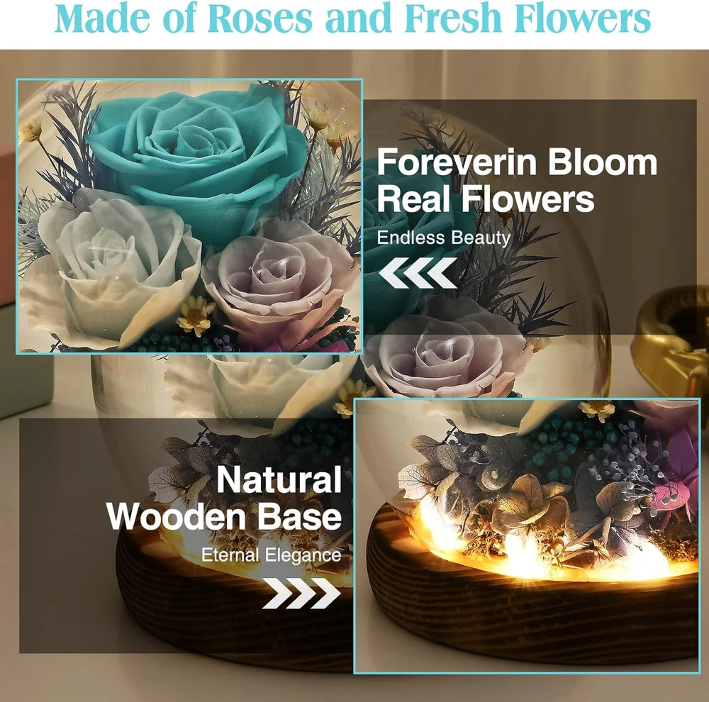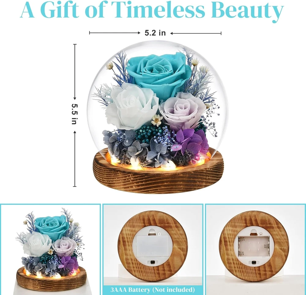 Store New Arrivals Add to Favorite View Feedback Contact Valentines Day Forever Real Roses for Her, Flowers for Delivery Prime, Preserved Roses Bouquet Flowers in Glass with LED Light Gifts Ideas for Birthday, Anniversary, Christmas, Mothers Day (Blue) Description Item model number RXWNM66 Item dimensions L x W x H 3 x 3 x 3 inches Plant or Animal Product Type Preserved Flowers Color Tblue Product Dimensions 3 x 3 x 3 inches Country of Origin China Item Weight 11.3 ounces Number of Items 1 Valentines Day Gifts for Her: Lasting Reminder of Your Love & Appreciation, Preserved Roses Gifts for Women, Mom, Grandma, Wife, Girlfriend, Sister, Mother, Daughter, Family and Friends. Suitable for Various Occasions: Preserved flowers with LED lights in glass dome can be given to family and friends as gifts for Valentine's Day, Christmas, Mother's Day, Thanksgiving, engagement, housewarming, wedding. Flowers for Delivery Prime: Handcrafted with natural flowers, we carefully choose the finest and most vibrant Flowers from our garden. Using advanced preservation techniques, these roses retain their beauty and freshness indefinitely, symbolizing everlasting elegance and love. Exquisite Gifts Sets: Product Size: 5.3*5.3inches, Forever Eternal Rose with Gifts Box Set (You don’t need to buy additional gift packaging). Warm Tips: Eternal Flower Glass Dome was securely encased in foam with in the box, which greatly reduces the possibility of the product being damaged in shipping. Please contact us if you have any inquiry or issue. Product Description ABOUT US We offer the best prices around on high quality products. Our E-store includes media such as books, movies, music and games while offering electronics, toys, sporting apparel, clothing, tools, general home, garden items and more. SHIPPING We are always working hard to ensure your package arrives as soon as possible. Please understand that some factors like weather, high postal traffic, and the performance of shipping companies are outside of our control. We offer free shipping to the lower 48 states and ship within 2 business days of payment, usually sooner. We do not accept P.O. Boxes. Please provide a physical address. For shipping outside of the continental USA, we only use eBay's Global Shipping Program.The item is shipped to KY and then sent to the rest of the world. International customers are responsible for all duties and taxes. Continue to check out in order to calculate costs for shipping the item to your country. Messages regarding eBay's Global Shipping Program MUST be directed at eBay EXCLUSIVELY. RETURNS We offer a 30-Day Return Policy on items which you are not completely satisfied with. You have the option for a full-refund or an exchange of the item. No returns are available on items shipped outside of the USA. PAYMENT We accept PayPal. CONTACT US This page content is yet to come Please ad us to your favorite seller and visit again later Thank You CUSTOMER SATISFACTION We try our very best to make sure every customer is completely satisfied. If there's a problem, message us! We're happy to help. WE ACCEPT