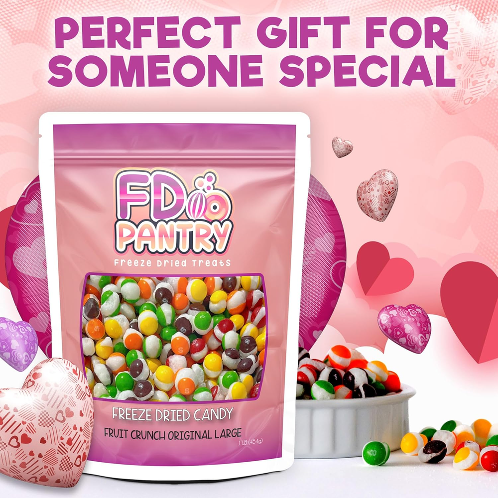 Freeze Dried Candy Assorted Fruit Flavors: Enjoy a delightful burst of Strawberry, Orange, Lemon, Grape, and Lime in our Original Candy Freeze Dried assortment. A flavor for every taste bud in a large 1lb pouch! Convenient & Resealable Packaging: Our 16oz, 1lb, 1 pound of candy comes in a 10x7x2 inch resealable bag, ensuring freshness and easy storage. Open and enjoy directly from the pouch without any mess. Enhanced Sweetness and Crunch: Experience the unique, light, and crunchy texture of our freeze-dried candies. A special drying process intensifies the flavors without sticking to your teeth, perfect for snacking anytime, anywhere. Versatile Snack for All Occasions: Whether it's for a backpacking adventure, camping, emergency food storage, or just a crave-worthy snack, our freeze-dried treats are an ideal choice for any situation. Gift-Ready for Any Event: Packaged in a sizable bag, these candies make an excellent gift option for Easter, birthdays, or any celebration. Delight friends and family with the innovative taste of freeze-dried candy. Product Description What is your Favorite Flavor? Add to Cart Add to Cart Add to Cart Add to Cart Add to Cart Add to Cart Add to Cart Customer Reviews 4.4 out of 5 stars 3,892 4.4 out of 5 stars 3,892 4.4 out of 5 stars 3,892 3.7 out of 5 stars 2,108 4.3 out of 5 stars 548 4.4 out of 5 stars 3,892 4.4 out of 5 stars 3,892 Price $18.99 $ 18 . 99 $7.99 $ 7 . 99 $12.99 $ 12 . 99 $9.99 $ 9 . 99 $14.99 $ 14 . 99 $8.99 $ 8 . 99 $18.99 $ 18 . 99 Flavor Original Original Original Original Original + Wildberry Sour Wildberry Freeze Dried ✔ ✔ ✔ ✔ ✔ ✔ ✔ Crunchy Candy ✔ ✔ ✔ ✔ ✔ ✔ ✔ Giftable ✔ ✔ ✔ ✔ ✔ ✔ ✔ Size 10x7 in 8x5 in 8x5 in 8x5 in 8x5 in 8x5 in 10x7 in Weight 16 oz 4 oz 8 oz 5 oz 8 oz 4 oz 16 oz