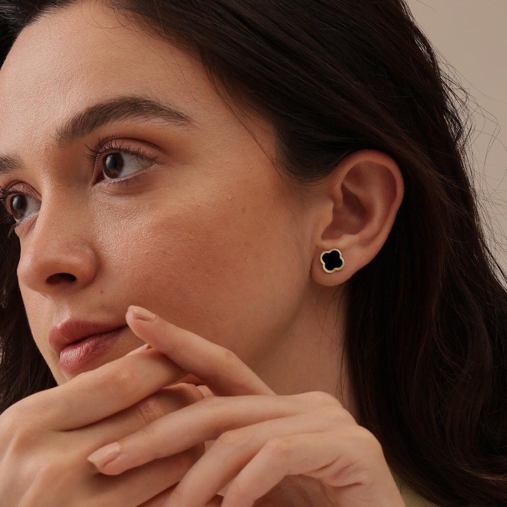 LeCalla Valentines Day Jewelry 925 Sterling Silver Clover Earrings for Women | 14K Gold-Plated Jewelry | Black Mother of Pearl Four Leaf Clover Earring for Gift Studded - 12mm MADE IN STERLING SILVER: This jewel comes with a '925' sterling silver stamp as a symbol of product quality. ⚡【Size Info】FEATURE: Medium Stud Earring, DIMENSIONS: 12 MM by 12 MM / 0.47 Inches by 0.47 Inches, with Butterfly Pushback Closure. The leaves of four-leaf clovers are said to stand for faith, hope, love, and luck. Each leaf of the four-leaf clover also represents health, wealth, love and happiness. Wear it daily and it will always bring you good luck. Metal Weight: 1.700 grams. EXCELLENT GIFT: This piece of jewelry is the perfect gift for Anniversaries, Wedding Party, Brides, Holiday, Birthdays, Graduation or just as a surprise to that special someone. We send our jewelry inside a beautiful jewelry box which can be sent to your friends and family as a gift. SPECIAL ANTI-TARNISH COATING: LeCalla Jewelry is coated in a special anti-tarnish polish that preserves its lustre and shine for long. JEWELRY CARE: Keep This Piece Shining And Scratch-Free, Avoid Contact With Corrosive Liquids And Other Harsh Chemicals. ABOUT LeCalla Junky : The name LeCalla Junky meaning ' The Beautiful You ', brings out the essence of our brand and what we stand for. The entire team at LeCalla believes that what you wear as a jewelry or an accessory is a reflection of your personality, the true You! We want our customers to explore themselves, to feel beautiful and to wear beautiful!. BEST USES FOR THIS EARRING: OTHER USES: Unique gift for women Earrings for women Fashion Jewelry Fashion Earrings Bridal Jewelry Earrings for women Wedding Jewelry Silver Earrings Special Occasion Jewelry Silver earrings for women Bridesmaid Jewelry 925 Silver jewelry Jewelry for Work 925 Silver earrings for women Jewelry Gifts Women's earrings Fancy Jewelry Round Shape Earrings Mothers Day Moms gifts Valentines Day Valentines day gifts for her Womens Day Universal Children's Day Thanksgiving Day Black Friday Cyber Monday Christmas Day KEY FEATURES: MATERIAL: 925 Sterling Silver Genuine Sterling Silver Product PACKAGING : 1 Piece of Earrings Item Code : ER185933BSFG