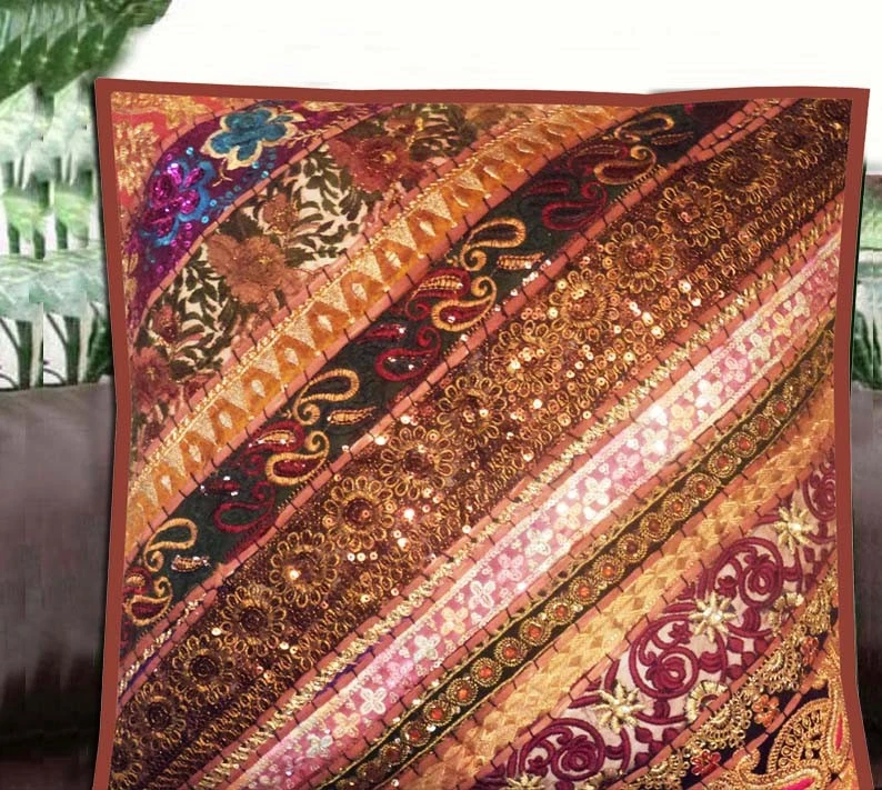 Valentines Day Gift 24" Handmade Patchwork Sofa Pillow Cushion Cover Living Room Valentines Day Gift 24" Handmade Patchwork Sofa Pillow Cushion Cover Living Room Beautiful, Dazzling, Vibrant--Breathtaking Vintage Sari beaded Huge (24"x24") Throw decorative pillow cover / wall tapestry hanging with stunning beadwork, exquisite moti & kundan work and glittering sequin work on rich silk & cotton base fabric patches in delightful warm shades of copper, rust, brown, maroon, green, golden from the state of Rajasthan in Northern India. Classic Indian Traditional accent pillow for your couch/bed/ sofa/ floor! Mistronic brings to you a an exquisite 100% hand embroidered silk & cotton blend vintage sari patch cushion pillow cover / huge tapestry with intricate multicolored threadwork in bright, floral & geometrical design motifs on warm, ethnic multiple Indian shades. Size: 24"x24" This gorgeous cushion pillow cover depicts an exquisite composition of different fabrics, raised gold threadwork, lustrous bead work and metallic embroidery. The intricate hand embroidery and beadwork is often taken from collars, cuffs and borders of old Indian textiles be it the vintage wedding saris, dupattas, salwar suits, lehngas or wedding cholis. The pieces of decorated fabric are hand selected and arranged into collages and backed in cotton. All patches with intricate beadwork, sequin work and gold threadwork are separated by Rajasthani threadwork in knot style outlining each patch with great precision and making each patch look traditional to the core. Richly embellished with tons of beads, kundan, moti (faux pearls), metallic studs, discs, sequins and metallic wires, this stunning cushion cover/ tapestry is a classic vintage delight. Skillfully hand crafted using Zardozi embroidery, gold thread embroidery, Pucca work and Aari embroidery by the embroiderers and weavers of Rajasthan in North Western part of India! What stops the eye is the perfect blend of all design elements. With not an inch left uncovered with either hand-embroidered floral design patterns, delicate beadwork or zari metallic elements, this piece stands apart as a splendid, heavily ornate piece of rich traditional Indian arts & crafts. Matching color cotton overlapped backing for inserting the cushion. ( We do not provide cushions/ inserts ). This stunning cushion cover is versatile in its usage! Use it as a bed decorative pillow, floor throw pillow, an accent pillow over your couch/sofa or even as a huge wall hanging tapestry/ table throw. It will bring you compliments from all corners. Retails at a very high value across departmental stores in USA & UK; similar items are retailing for almost 3/4 times the price on eBay itself. We give you equal or rather better quality merchandise at almost one-third/fourth the price. And we assure you, you would be absolutely delighted with your purchase or we shall return you your full money without question! Thanks for looking! Happy Shopping..... !! !Wholesale Inquiries Welcome!!! #ChristmasGift, #NewyearGift, #VeteransGift, #HalloweenGift, #DiwaliGift, #Gift, #CelebrationGift, #FestiveSeasonGift, #Branded, #GiftForHer, #GiftForHim, #HomeDecor #HomeFurnishings #HomeandDecor #WallArt #Fall #PersonoalizedGifts #ChristmasDecor #NewyearDecor #HalloweenDecor #seasonsgift #festiveseason #ValentinesDayGift #MultipurposeGift #AnniversaryGift #BirthdayGift #CongratulationsGift #Good Luck Gift #InternationWomensDayGift #MothersDayGift #LaborDayGift #NewHomeGift #Party Gift #RetirementGift #SurpriseGift #ThankyouGift #WeddingGift #EngagementGift Shipping & Handling Our items are shipped from our India office based in Delhi, NCR using the Indian postal shipping services (INDIA POST) Registered Airmail Service as well as through courier services like Fedex, Aramex, DHL, Lexship & Bombino. We ship our items within 24-48 hours of receiving the payment. Items are normally delivered within a period of 12-18 days. Shipping & handling charges mentioned are applicable for all destinations in UK & USA only. But we do ship worldwide. For any other destination please write to us for a shipping quote prior to buying/ bidding! Please do provide your contact number for smoother & faster delivery process. Payment Payment is due within 3 days of the end of the listing/ auction. In case of multiple purchase, we normally combine items purchased within a period of 7 days. In case you wish to extend this period, please let us know beforehand. Satisfaction Guarantee & Refund Policy We have always aimed at 100% customer satisfaction. Your satisfaction is our topmost concern. We address any of our customers' concerns in the most efficient and timely manner during and after the transaction. Until and unless you are 100% satisfied, your concern remains our duty. If you are not satisfied with the purchase for some reason, you may return the item to us for a full refund less shipping cost. We are an established eBay seller with an experience of more than fifteen years and a great track record. Our glowing feedback from our clients is a testimony to this fact. So you can be sure that you are in safe and trusted hands. We guarantee highest standards of quality & service! Feedback & Disputes Your feedback is a reward for all the hard-work put in by us! Please be kind enough to leave your valuable positive feedback for the transaction and 5 star ratings in all categories after your complete satisfaction regarding the product. We shall be grateful & do the same for you too.However if you feel the need to file a dispute, kindly write to us beforehand and allow us to resolve the issue in a timely manner and to your utmost satisfaction. This may involve refunding for the item or even replacing it. We shall ensure to do anything possible to resolve the problem promptly! Listing and template services provided by inkFrog