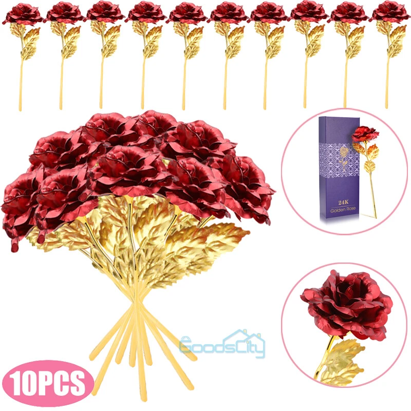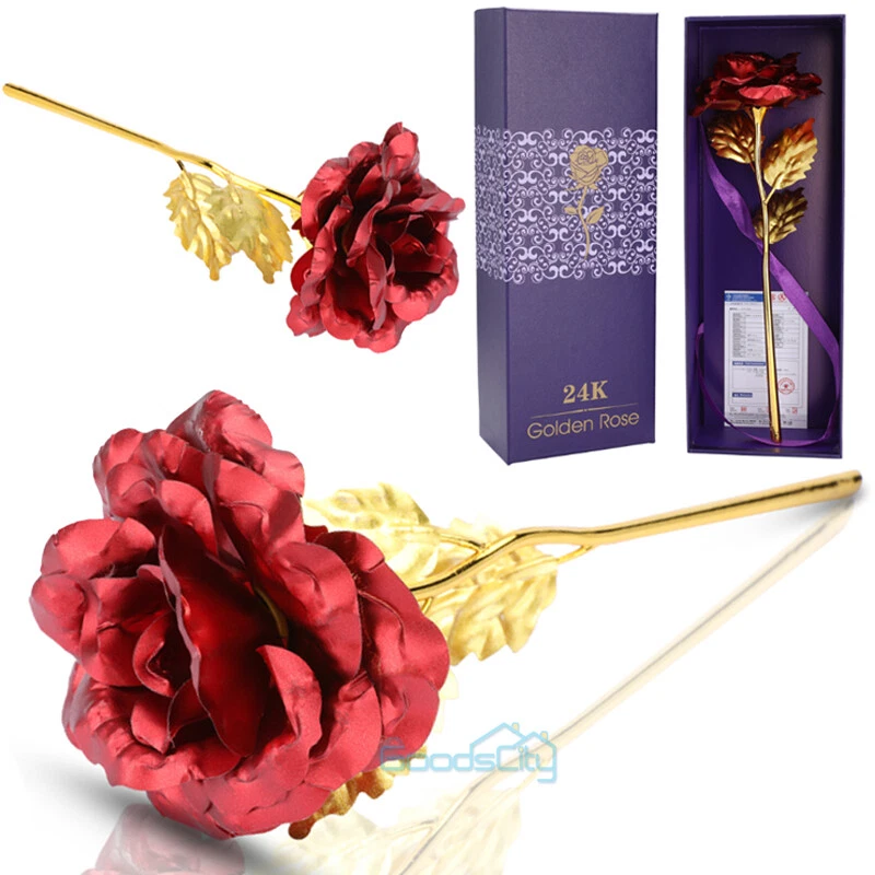 Valentines Day Gift 24K Real Dipped Rose Gold Rose Flower Uniques Gift For Girls Ship within 24 hours. 100% New & Excellent Quality Strictly QC, Each item was fully checked before shipping FREE & FAST Shipping delivery with Tracking Number Features: * Petals, leaves on the surface are gold-plated. Rose rod is polyethylene gold-plated. The rose internal is polyethylene plastic. * Light weight, petal remains strong, not easy to fold, deformation, not faded. (note: the product internal skeleton is of polyethylene plastic material, which is very light, not metal) Specification: Total length: approx. 25cm Leaf length: approx. 5cm Flower diameter: approx. 8cm Flower bud diameter: approx. 6cm Package Includes: 1/2/3/5/10 x Dipped Foil Gold Plated Rose 1/2/3/5/10 x Gift Box Return Delivery details Payment FAQ's Contact us Return If you found that the item was damaged when you get it, pls contact us firstly Delivery details We Ship to Payment address ONLY. Payment PayPal accepted. FAQ's None Contact us Welcome to contact us for any question. On Jan 28, 2024 at 10:14:08 PST, seller added the following information: