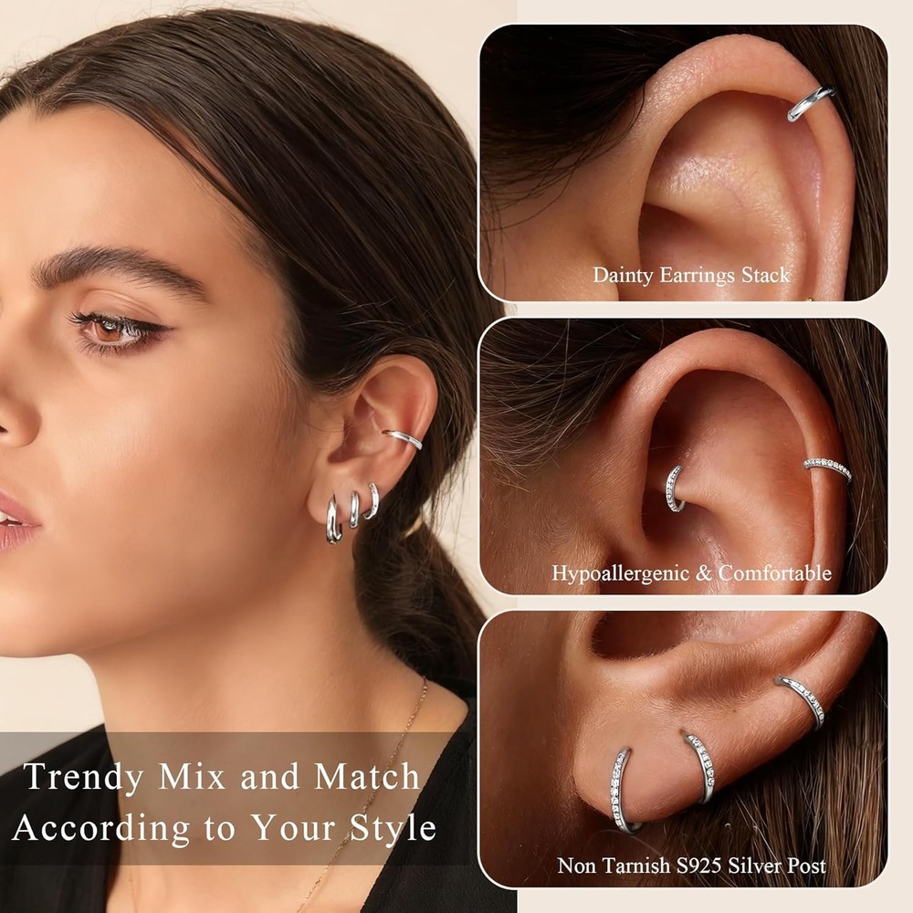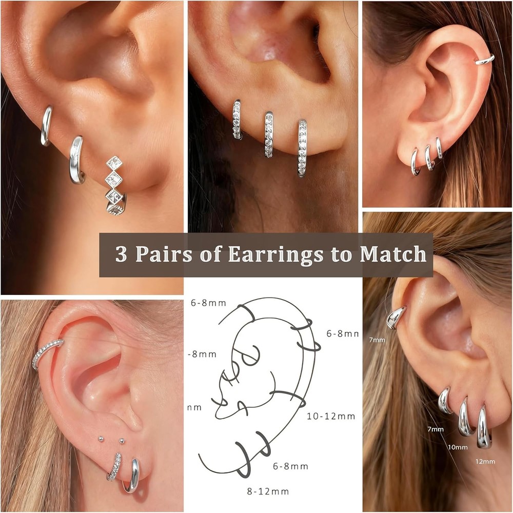 Free eBay listing template designed by dewiso.com DORANA Valentines Day Gift 3 Pairs 925 Sterling Silver Earrings for Women Girls Non Tarnish Small Hypoallergenic Huggie Hoops Cartilage Stack Earring Sets for Multiple Piercing FREE AND FAST SHIPPING! Silver Earrings Set: You will be receiving 3 pairs earring stacks Silver, each boasting distinctive designs, sparkling cubic zirconia, and charming huggie hoops.This versatile earrings set promises a captivating ensemble, whether worn individually for subtle sophistication or layered together for a statement-making flair. Hypoallergenic Huggie Earrings Set: small silver hoops set is made of premium 925 sterling silver post, have a smooth surface through careful polishing techniques, nickel-free, lead-free, long-lasting and non tarnish are especially for who have sensitive ears. small Silver hoop earrings are set with high-quality cubic zirconia, which have a dazzling sparkle that is reminiscent of real diamonds. Silver Earring Sets for Multiple Piercings:Gague:20G=0.8mm, Small Hoop Earrings Diameter: 10mm, ensuring a perfect fit for any type of ear lobe, Silver or Silver Earrings Set Color to Choose. Simple and classical design, classical and timeless, Wearing these Silver studs and hoops, you will be more beautiful and elegant Silver Earring Stack: These small Silver earrings for women are elegantly presented in a delightful gift box. Ideal jewellry Presents for women, yourself, mom, wife, daughter, sister and friends important for you on Birthday, Christmas, Thanksgiving, Valentine's Day, Mother's Day, Anniversary and more. DORANA JEWELRY:Eachnon tarnish silver earrings are carefully crafted with attention to detail and superb craftsmanship. Allowing you to keep silver earrings hoops on all day without any discomfort.silver stackable earrings makes it a timeless piece she 'll be able to enjoy for years to come. Product We offer a 30-Day Return Policy on items which you are not completely satisfied with. You have the option for a full-refund or an exchange of the item. No returns are available on items shipped outside of the US . Shipping We offer Free Shipping to the US and ship within 2 business days of payment, usually sooner. We use UPS express shipping. That's why your products are usually delivered within 3 days . Contact We try our very best to make sure every customer is completely satisfied. If there's a problem , message us! We're happy to help. 24/7 live chat available.