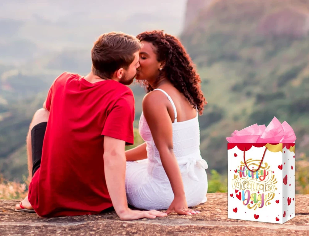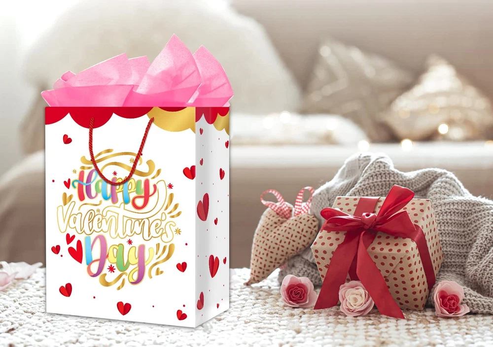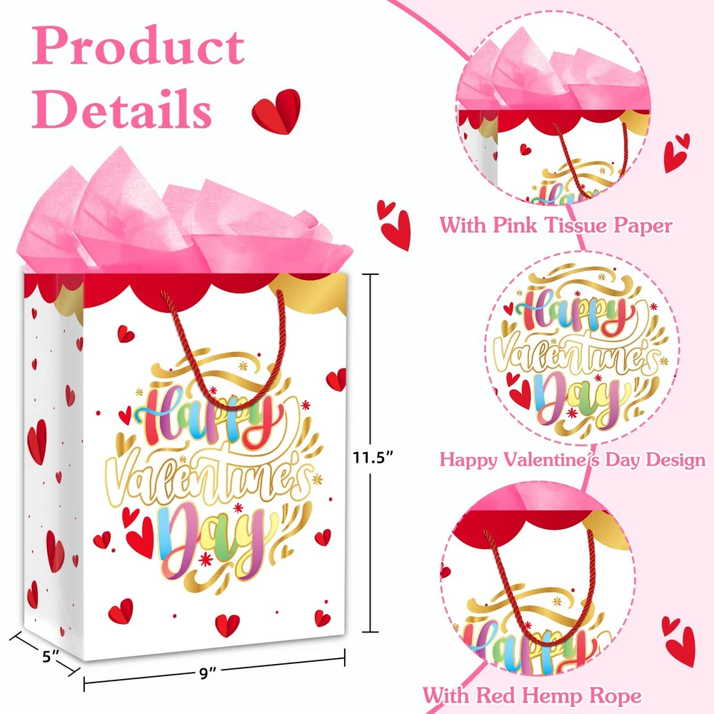 Valentines Day Gift Bag With Tissue Paper 11.5" Large Happy Valentine's Day Gift