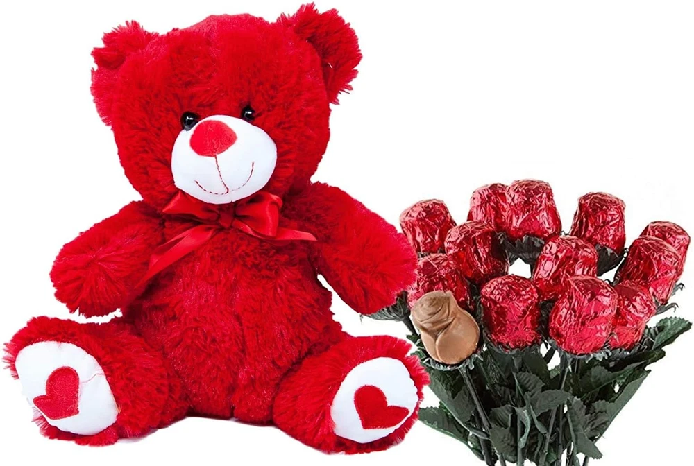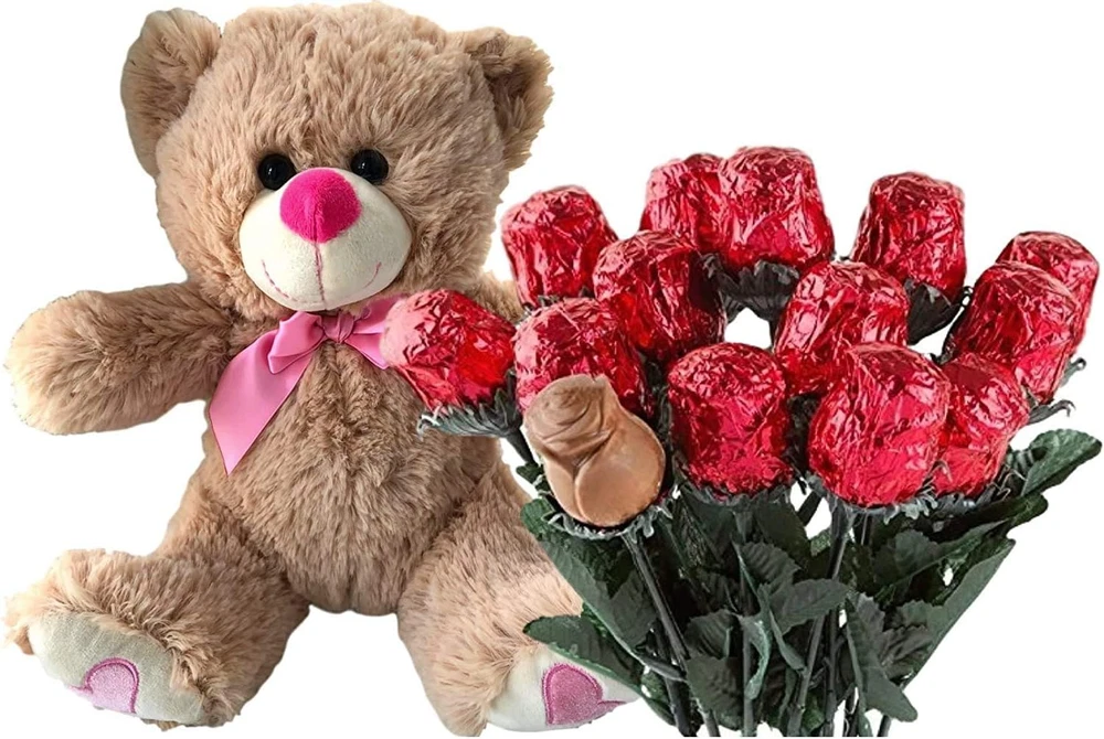 Valentines Day Gift Basket | Teddy Bear Plush 12 Inches (Color may Vary) & A