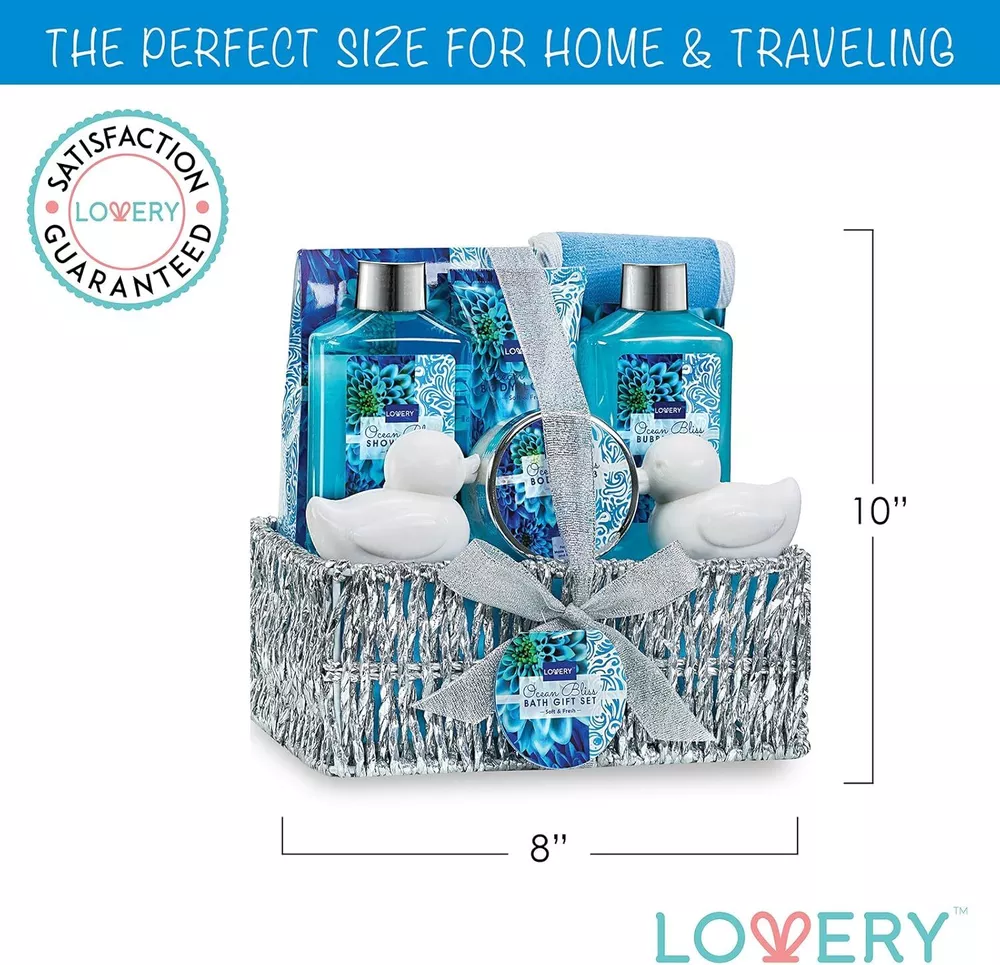 Valentines Day Gift Basket in Heavenly Ocean Bliss Scent - 9pc Bath & Body Set - Shower Gel, Bubble Bath, Bath Salt, Body Lotion & more! Great Wedding, Anniversary, Birthday, Graduation Gift for Women