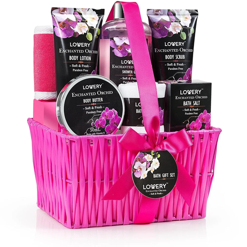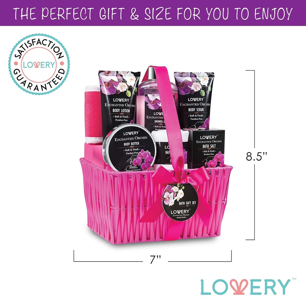 COMPLETE SPA GIFT SET ★ Indulge your senses with a luxurious at-home spa treatment! Beautifully packaged in a pretty pink basket, this bath gift set makes for an extraordinary gift, and adds a lovely touch to the bathroom. Contains a Shower Gel(180ml), Body Butter(50ml), Body Lotion(100ml), Body Scrub(100ml), Bath Salt(50g), Orchid Massage Bath Oil(30g), Plush Towel, Exfoliating Loofah Back Scrubber and a Deep Pink Wicker Basket for decor and storage. ENCHANTED ORCHID FRAGRANCE★ Enchanted Orchid is a hypnotic fragrance that's sultry, intriguing, and conjures the image of an exotic blooming garden. You'll permeate a sensual, feminine charm when using this seductive fragrance. Soak in ultimate leisure with our fine bath products that will stimulate your senses, leaving skin smooth and supple. GREAT FOR YOUR SKIN ★ Why waste money on chemical-laden skincare that may harm your body and the environment? These luxury bath accessories are PARABEN-FREE AND NEVER TESTED ON ANIMALS. In addition, they're made with SHEA BUTTER & VITAMIN E to soothe, moisturize and protect your skin. The delicate bath oil will soften your skin. All ingredients used in this spa basket are clearly displayed for your benefit. THE IDEAL HOLIDAY GIFT IDEA ★ Find the way to your woman's heart & delight her with something truly special when presenting this gift of sheer indulgence! Personalize it with a thoughtful written message on the enclosed gift note to win the heart of your Girlfriend, Wife, Mom, Sister, or Friend. What better way to celebrate Birthdays, Anniversaries, Christmas, Mother's Day, Valentine's Day & Thanksgiving with the ultimate beauty spa gift basket, Armed with our array of lavish bath accessories! 100% SATISFACTION GUARANTEE ★ Here at Lovery, your complete satisfaction is our main priority! We're sure you'll adore this deluxe home spa gift basket - but in case of any order-related issues, feel free to contact us for five-star customer service. We promise to do everything in our power to make it right! Give yourself a spa treatment without leaving the comfort of your own home. The Lovery White Orchid and Jasmine Bath and Spa Set includes everything you need to pamper yourself. This all-inclusive set features everything you need to look and feel beautiful. With everything from shower gel to bath oil you can indulge in the soothing scent of jasmine and fresh orchids. Our products are made with moisturizing shea butter and nutrient-rich vitamin E oil. SET INCLUDES: 180ml Shower Gel 180ml Bubble Bath 100ml Body Lotion 100g Bath Salt 50ml Body Scrub 30ml Bath Oil Bath Towel Loofah Back Scrubber Gold Basket BENEFITS & FEATURES: 9 Piece Set White Orchid & Jasmine Scent 100% Paraben Free Not Tested on Animals Works For All Skin Types Beautiful Packaging LUXURIOUS BATH SET! Step up your beauty routine with this deluxe spa basket. It includes everything you need to spoil yourself from head to toe. Looking and feeling great is effortless when you have everything you need to fortify your skin with moisture. Take a relaxing bath using our bath oil, bath salt, body scrub and body lotion. Use the bath pouf to create a rich lather with our nourishing shower gel. The included gift basket is reusable and perfect for decoration and storage. Our bath set will leave you feeling beautiful from your head to your feet! THE PERFECT GIFT FOR HER Make her feel like a pampered princess. The refreshing scent will invigorate her senses and make her feel like she’s getting the full spa treatment right at home. Soothing aromas are perfect for rest and relaxation. It’s exactly what she needs and it’s perfect for any occasion.