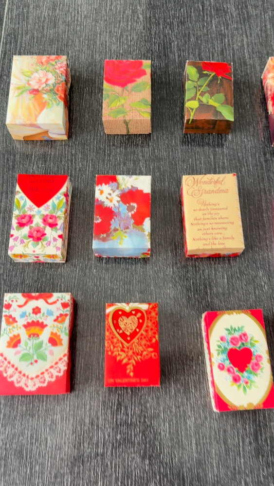 Valentines Day Gift Box Lot of 12- from Vintage Greeting Cards I created these cotton filled Gift Boxes in various sizes (see pics) from Vintage Valentine's Day Greeting Cards. Each box is cotton filled and has a brown kraft paper bottom. Free Shipping 2025-121
