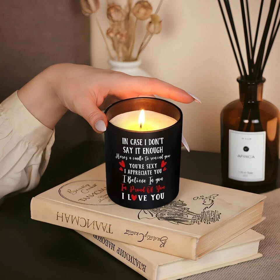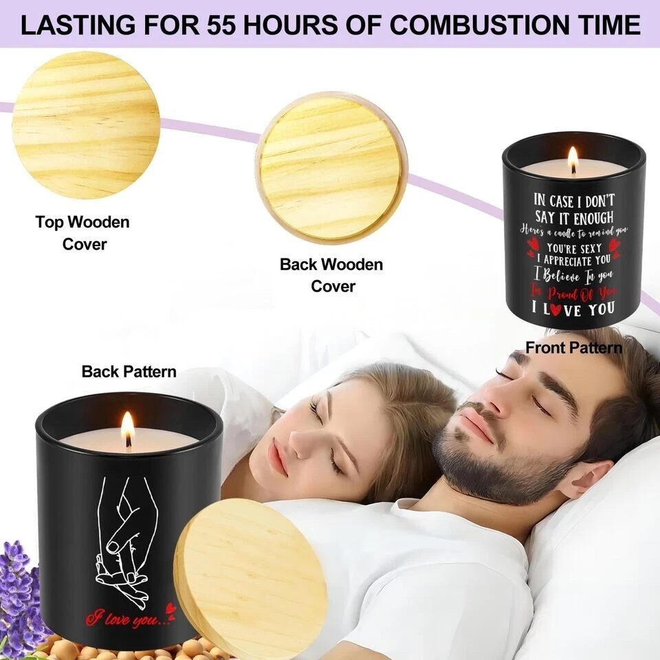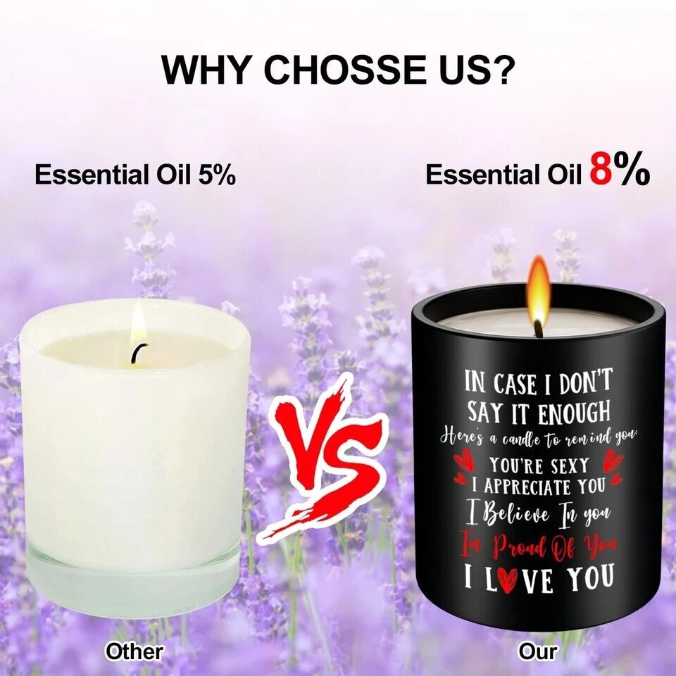Valentine's Day Gift for Her or Him - Anniversary or Wedding Gift for Women - Couples Gifts for Girlfriend, Boyfriend, Wife, Husband, Romantic Gifts for Him, Her, Vanilla Lavender Scented Candle 10oz About this item: ROMANTIC COUPLES GIFTS - Liven up your relationship with your loved ones with our stunning couple candle gifts. It will be a surprise to give this romantic birthday gift and show your love for your loved ones! Moreover, these are also Christmas, Valentine, Mother, Anniversary, birthday gifts for couples to symbolize their love. WIFE, GIRLFRIEND, HUSBAND, BOYFRIEND BIRTHDAY GIFTS OR ON ANY OCCASION: The special one in your life will undoubtedly be filled with joy and happiness. A bright, heartwarming smile will illuminate their face as they open it, their eyes sparkling with anticipation and excitement. Used for wife husband birthday gift, birthday gifts for girlfriend boyfriend, birthday gifts for him her, ... UNIQUE ANNIVERSARY GIFTS - Look no further than our vanilla candle, whether you are looking for anniversary, valentines day gifts for husband and wife or an couple gift with a sentimental message. Ideal gift for boyfriend, husband, romantic I love you gifts for her, or even a date night gift for couples. BIRTHDAY GIFT IDEAS - These stunning candles make ideal gifts for couples, men, women, suitable for any occasion you want to spread your love. A simple warm and heartfelt candle girlfriend ideas gifts suitable for anniversary, birthday, valentine's day, Mother's Day, thanksgiving, Christmas, wedding, thank you gifts, holiday. ECO-FRIENDLY And REUSABLE - The candle is handmade with high quality natural soy wax and Lemongrass fragrance oils. Our soy wax burns nice and clean and Eco-friendly that perfect for aromatherapy, meditation, yoga, etc. Wax can easily be cleaned out of the jar with hot soapy water and the jar can be reused or recycled. 55 HOURS BURNING TIME - Crafted with soy wax, this Candle for Him Her allows a clean, even burn for approximately. 55 hours. The lead-free wick, which has been specifically designed to ensure a continuous and steady burn, makes the wax melt evenly and consistently. After full use, this glass jar can be used for home decor and is also suitable for placing your small objects.