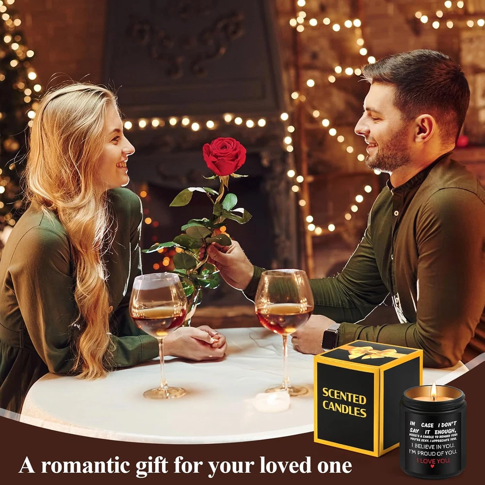 Expressive Romantic Candle Gift: Show your appreciation with a candle that says it all. Featuring the message “IN CASE I DON’T SAY IT ENOUGH, HERE’S A CANDLE TO REMIND YOU: YOU’RE SEXY. I APPRECIATE YOU. I BELIEVE IN YOU. I’M PROUD OF YOU. I LOVE YOU,” this is a sentimental gift for him and her and a perfect anniversary gift for couples. Ideal Engagement or Wedding Gift: This candle makes a thoughtful engagement gift for couple or wedding gift idea, ideal for celebrating relationship milestones with a lasting expression of love and support. Lavender Scented Candle for Relaxation: Infused with a soothing lavender aroma, this lavender scented candle is perfect for creating a relaxing, intimate atmosphere, making it an ideal romantic candle gift. Personalized Anniversary and Milestone Gift: Perfect for special occasions, this candle is a unique personalized anniversary gift and a funny couple gift that balances sentimentality and humor for meaningful gifting. Versatile for Any Occasion: Whether for an anniversary, birthday, or just because, this candle is a versatile choice. It’s a sentimental gift for him and her that celebrates love in an elegant, heartfelt way. Product Description