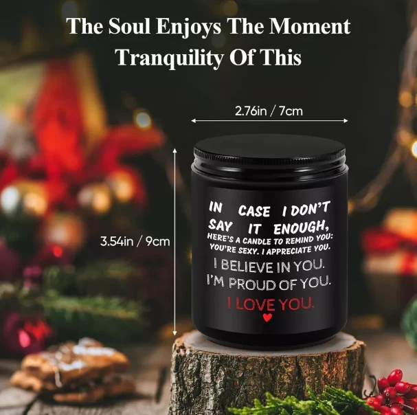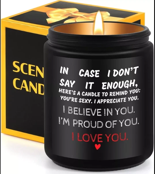 Expressive Romantic Candle Gift 🕯️❤️ – The Perfect Way to Say "I Love You" ✨ Heartfelt Appreciation & Love Message – Show your deepest emotions with this beautifully crafted candle featuring the touching message: “IN CASE I DON’T SAY IT ENOUGH, HERE’S A CANDLE TO REMIND YOU: YOU’RE SEXY. I APPRECIATE YOU. I BELIEVE IN YOU. I’M PROUD OF YOU. I LOVE YOU.” 💖 This sentimental and romantic gift is perfect for him, her, couples, husbands, wives, boyfriends, and girlfriends on any special occasion. 💍 Perfect Engagement & Wedding Gift – Looking for a thoughtful engagement gift for couples or a unique wedding gift idea ? This candle is a lasting token of love and support, celebrating relationship milestones with warmth and affection. 🎁💑 🌿 Lavender Scented Candle for Relaxation – Infused with a calming lavender aroma , this candle helps create a soothing, intimate ambiance , making it an ideal romantic candle gift for a cozy date night, self-care routine, or stress relief . 🕯️💜 🎉 Personalized Anniversary & Milestone Gift – Searching for a funny couple gift or a unique personalized anniversary gift ? This candle perfectly balances sentimentality and humor , making it an unforgettable present for Valentine’s Day, birthdays, and anniversaries . 💝 🎀 Versatile for Any Occasion – Whether you’re celebrating an anniversary, birthday, wedding, engagement, or just want to surprise your partner "just because" , this candle is a versatile and heartfelt gift . It’s a luxurious, elegant, and meaningful expression of love . 💞 🔥 Premium Quality & Long-Lasting Burn – Made from high-quality soy wax , this candle ensures a clean, long-lasting burn , filling any space with a delightful aroma. Ideal for home décor, relaxation, and romantic settings . 🕯️✨ 💌 Perfect for Gifting & Ready to Impress – Comes in an aesthetic, gift-ready packaging , making it a hassle-free gift for couples, long-distance relationships, newlyweds, and loved ones . 🎁🎀 ✅ Great for eBay, Amazon, Etsy & More – A must-have for those looking for anniversary gifts for couples, romantic gifts for her, appreciation gifts for him, or unique gifts for boyfriends and girlfriends . 🌟 Make every moment special with this romantic lavender-scented candle – a perfect blend of love, appreciation, and relaxation! 💕🔥 Brand Unbrended Color I LOVE YOU Product Dimensions 2.75"W x 3.74"H Number of Items 1 Scent lavender Are Batteries Included No Indoor/Outdoor Usage Indoor Specific Uses For Product Celebration Shape Cylindrical Material Soy Wax Container Material Glass Occasion Mother's Day, Christmas, New Year, Birthday, Thanksgiving Seasons All Season Special Feature Unique Message, Soy Wax Style Modern Wick Quantity 1 Model Name Jar Candles Theme Love Package Information Jar Material Type Free Paraffin, Beeswax, Gel