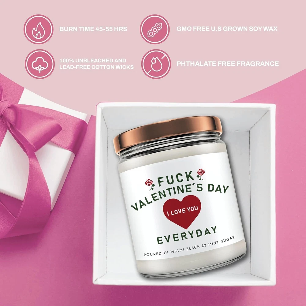 Free eBay listing template designed by dewiso.com I Love You Everyday Funny Valentines Day Gifts for Her Girlfriend Wife, Scented Soy Wax Candle Made in USA, 9 oz - Unique Gift Idea, Romantic Gifts for Her by Mint Sugar Candle Company FREE AND FAST SHIPPING! About this item Valentines day gifts for her candle – valentines day gifts for her naughty, naughty valentines day gifts for her. The candle has an enticing fragrance and can be used in a variety of ways, in the home and in the office; As a Valentine's gift for a her, this candle can give her a moment of relaxation and tranquility. Handmade in the USA valentines day gift for her – This 9 oz candle is hand-poured and made with premium soy wax and its delicate scent makes you feel warm and cozy. With no added colors and natural ingredients, this unique soy wax candle is perfect romantic gift for her. Long-lasting Burn – Our unique valentine gifts for her Soy candle is clean-burning with a cotton wick. Funny valentines day gifts for her candle lasts 55 hours so don't worry about it going out. Handcrafted with love and good vibes. Unique Valentines Gift for her – Soy wax candles are perfect for relieving stress; Whether you are feeling overwhelmed at work, or just feeling too lazy to do anything, soy candles provide a soothing environment that will make you feel at ease; The pleasant fragrance of these candles can make any room filled of nice scent. Candles for women beautiful gift for a beautiful women – valentines candle, valentines candles, valentines day candle, valentine candle, valentines day candles, I love you candle. Product We offer a 30-Day Return Policy on items which you are not completely satisfied with. You have the option for a full-refund or an exchange of the item. No returns are available on items shipped outside of the US . Shipping We offer Free Shipping to the US and ship within 2 business days of payment, usually sooner. We use UPS express shipping. That's why your products are usually delivered within 3 days . Contact We try our very best to make sure every customer is completely satisfied. If there's a problem , message us! We're happy to help. 24/7 live chat available.
