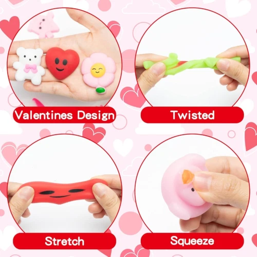 Haooryx Valentine's Exchange Gifts Bulk - 28-Piece Mochi Squishy Toys with Gift Cards Clear Bags Heart Kids' Multi-Item Party Favors Packs Classroom Goodie Gift Bags Filler School Classroom Prizes Description Features: Great Value for Valentine’s Day: Get 28 cute mochi toys, 28 greeting cards (7 unique designs), and 28 clear bags. Perfect for sharing with friends or classmates at Valentine’s Day parties. Safe & Durable: Made from non-toxic TPR material, these soft and squishy toys are safe for kids. The greeting cards are double-sided and durable, perfect for personal messages. Easy Holiday Gifts: With 7 Valentine’s Day designs, simply write a name or message on the card, place the toy and card in a bag, and you’ve got a thoughtful gift. Great for classroom exchanges and holiday parties. Versatile & Fun: Ideal for Valentine’s Day, St. Patrick’s Day, and Easter celebrations. Use them as party decor, classroom gifts, or goodie bag fillers. Kids will love giving and receiving these cute toys. Stress Relief & Reusable: These squishy toys are not just cute—they’re washable, reusable, and perfect for stress relief. Poke, stretch, and squeeze to boost your mood and unwind. Product Details: Product Dimensions: 7 x 4 x 1 inches Item Weight: 11.6 ounces Country of Origin: China Manufacturer recommended age: 3 years and up Manufacturer: Haooryx Handling We will ship all orders within 3 business day of payment. Delivery We Do Not Ship Outside of the Continental US. Return Policy All items qualify for returns within 30 days of receipt. Buyer is responsible for return shipping on any item that is not damaged. Feedback We take our reputation seriously, we buy and sell online, so we understand the value of trust. If you are unsatisfied with your order, please contact us and we will work with you to resolve it to your satisfaction.