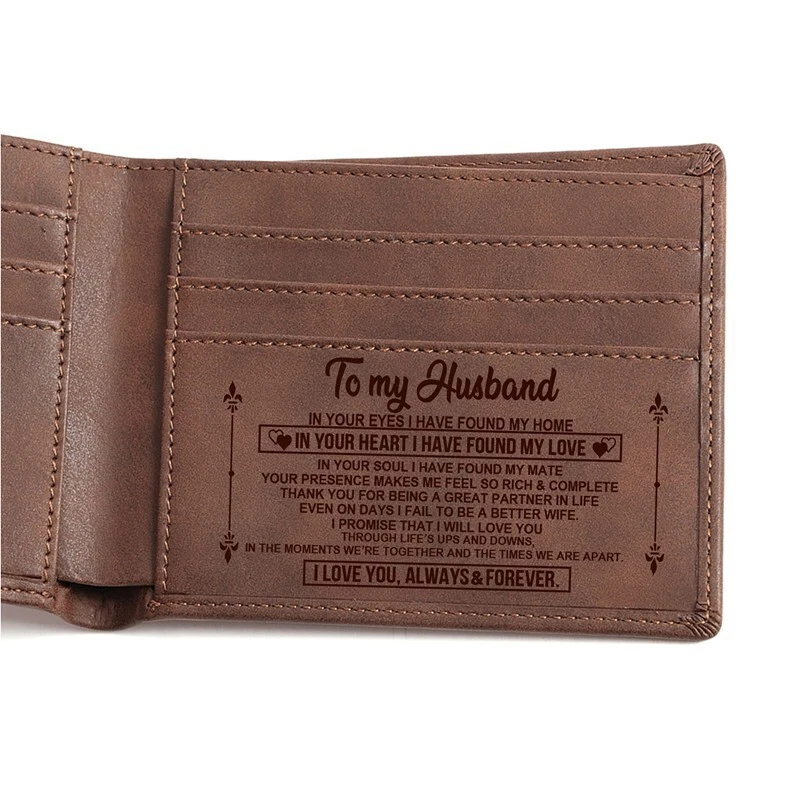 size: about 11.5*9.5*2cm PU Laser-engraved wallet romantic love gift for boyfriend husband/anniversary present /birthday gift /new year Christmas present