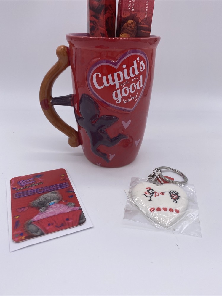 Valentines Day Gift Hamper - Balloon- Incense - Key Ring - 3D Pocket Gift Card. Includes 1 x self inflatable balloon 1 x Cupid key ring 1 x pocket 3D valentines card 1 x Cupid love mug 1 x red rose incense (20 sticks) 1 x love /amor incense (20 sticks) Comes in gift box ready to give your special valentines