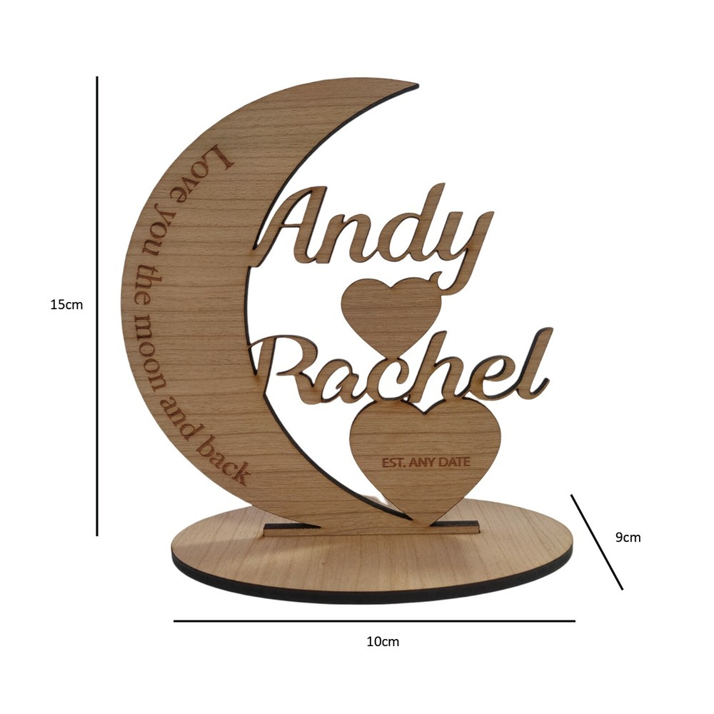 Personalised Valentines Day Gift A special Gift to tell that special someone that you love them! A gift to make your love one smile! How to Personalise Add names and date required to the Personalisation box above or message us via the contact seller As well as being a practical essential office / desk accessory this could easily be used as a decorative ornament in the home. Product specifics - 15cm Height 10cm width 9cm wide Product reads: Love you to the moon and back Recipients names Date